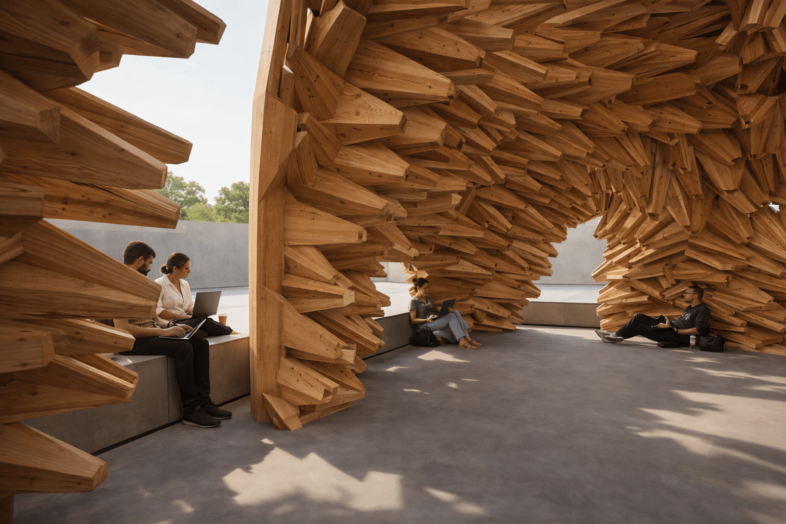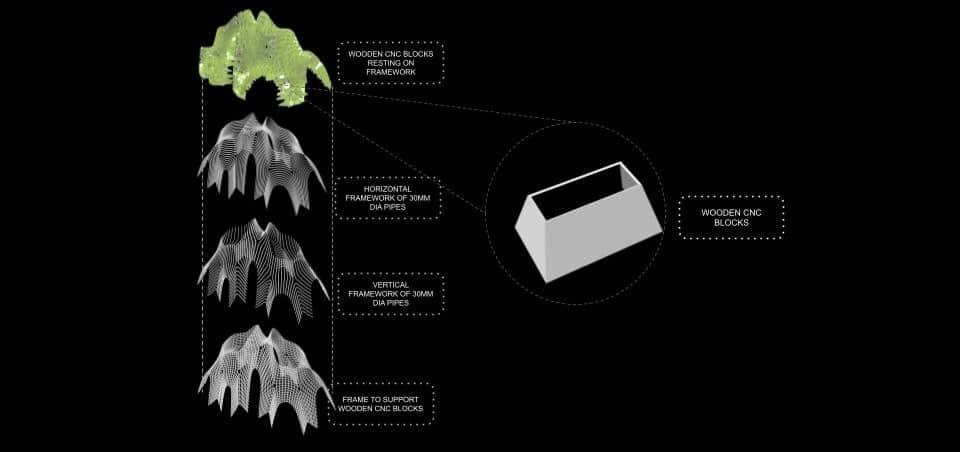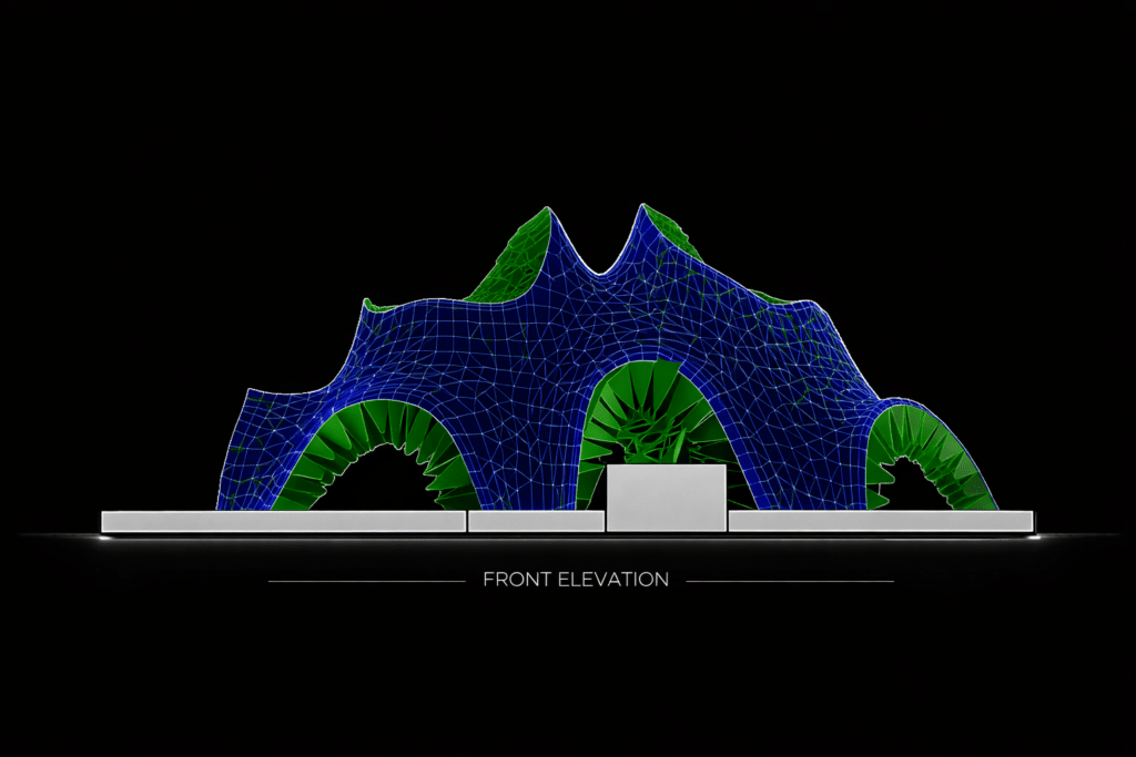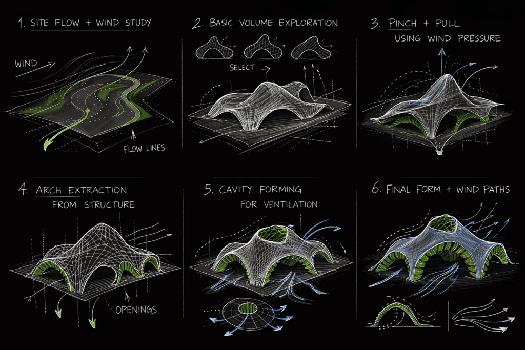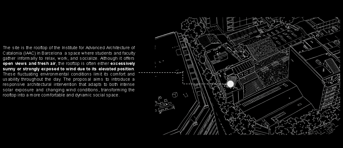 The idea is to make the wind visible. As air moves through the pavilion, it creates subtle changes in light, shadow, and motion. The space becomes dynamic and constantly changing, depending on the environment. Instead of being a fixed object, the pavilion is a living structure that responds to nature. It reflects the direction, speed, and presence of wind, making the environment an active part of the architecture.