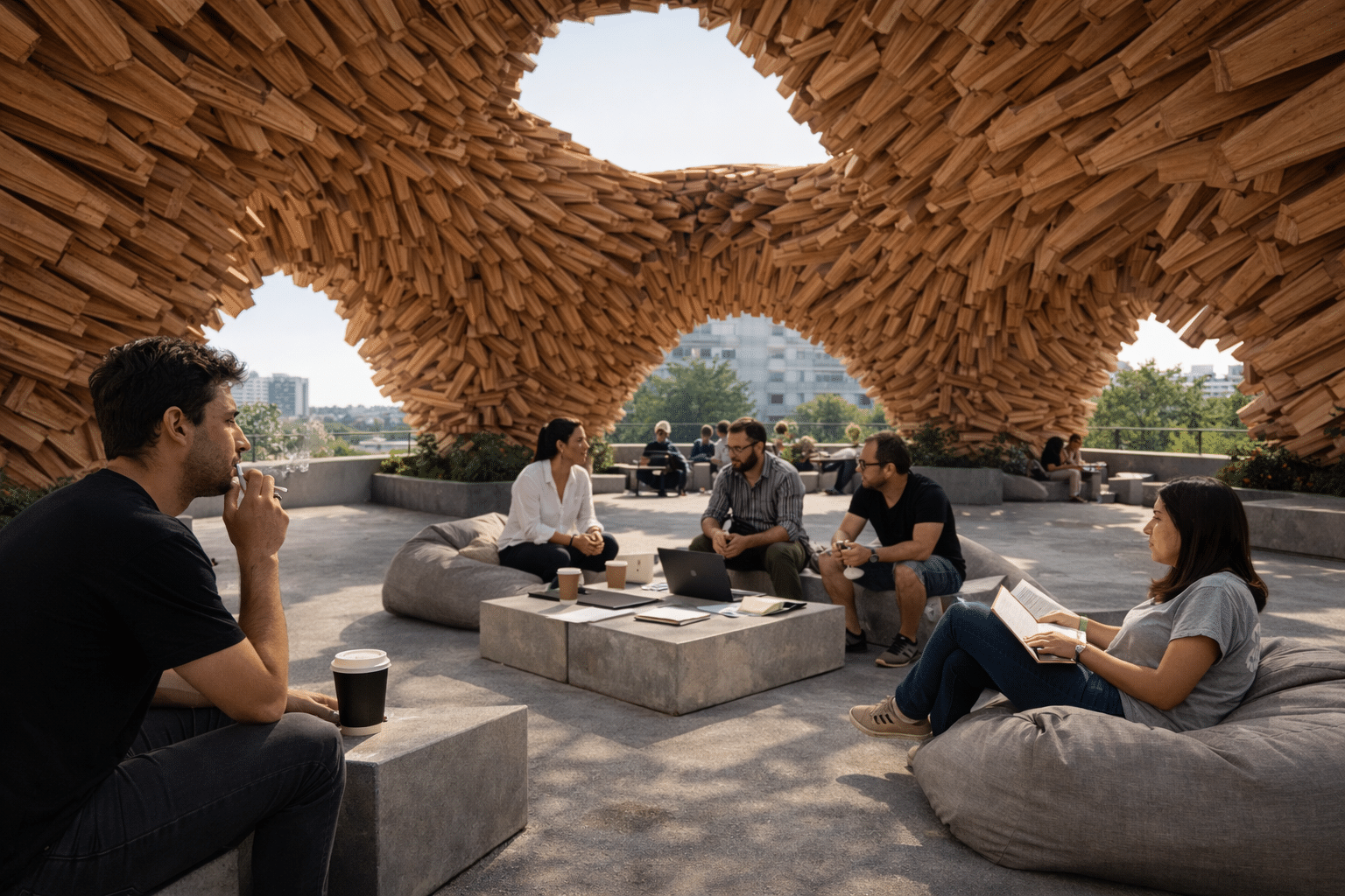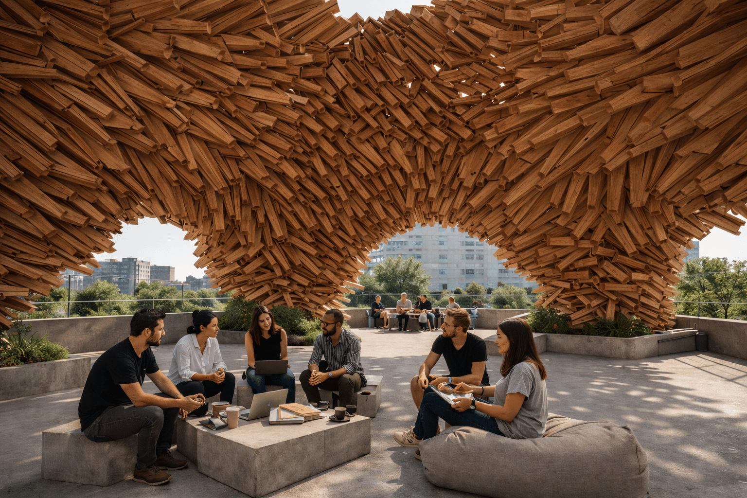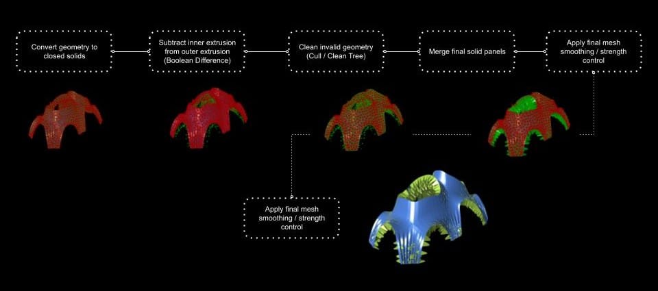 The idea is to make the wind visible. As air moves through the pavilion, it creates subtle changes in light, shadow, and motion. The space becomes dynamic and constantly changing, depending on the environment. Instead of being a fixed object, the pavilion is a living structure that responds to nature. It reflects the direction, speed, and presence of wind, making the environment an active part of the architecture.