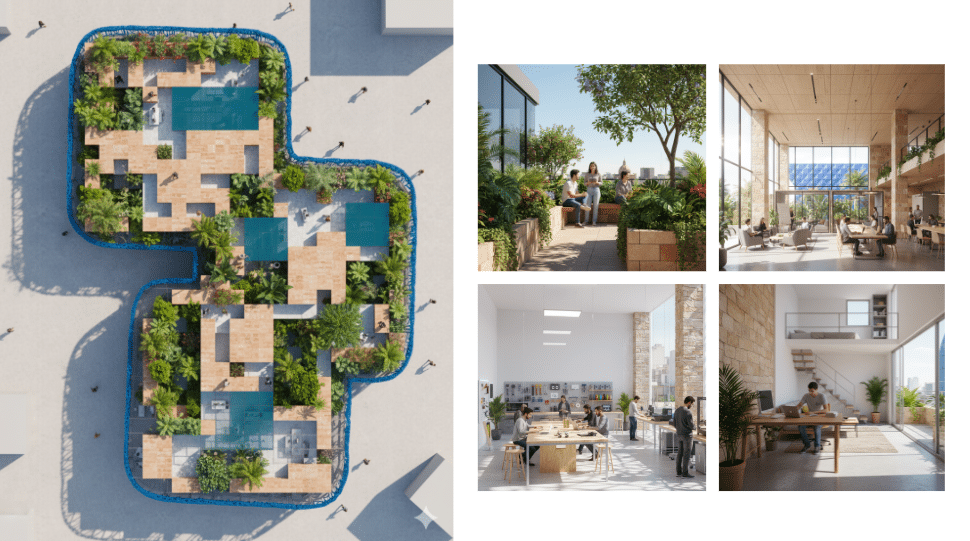 We began with a site analysis and determined our program. Later on, we started defining our modules based on the program. The analysis gave us the typology and the topology.