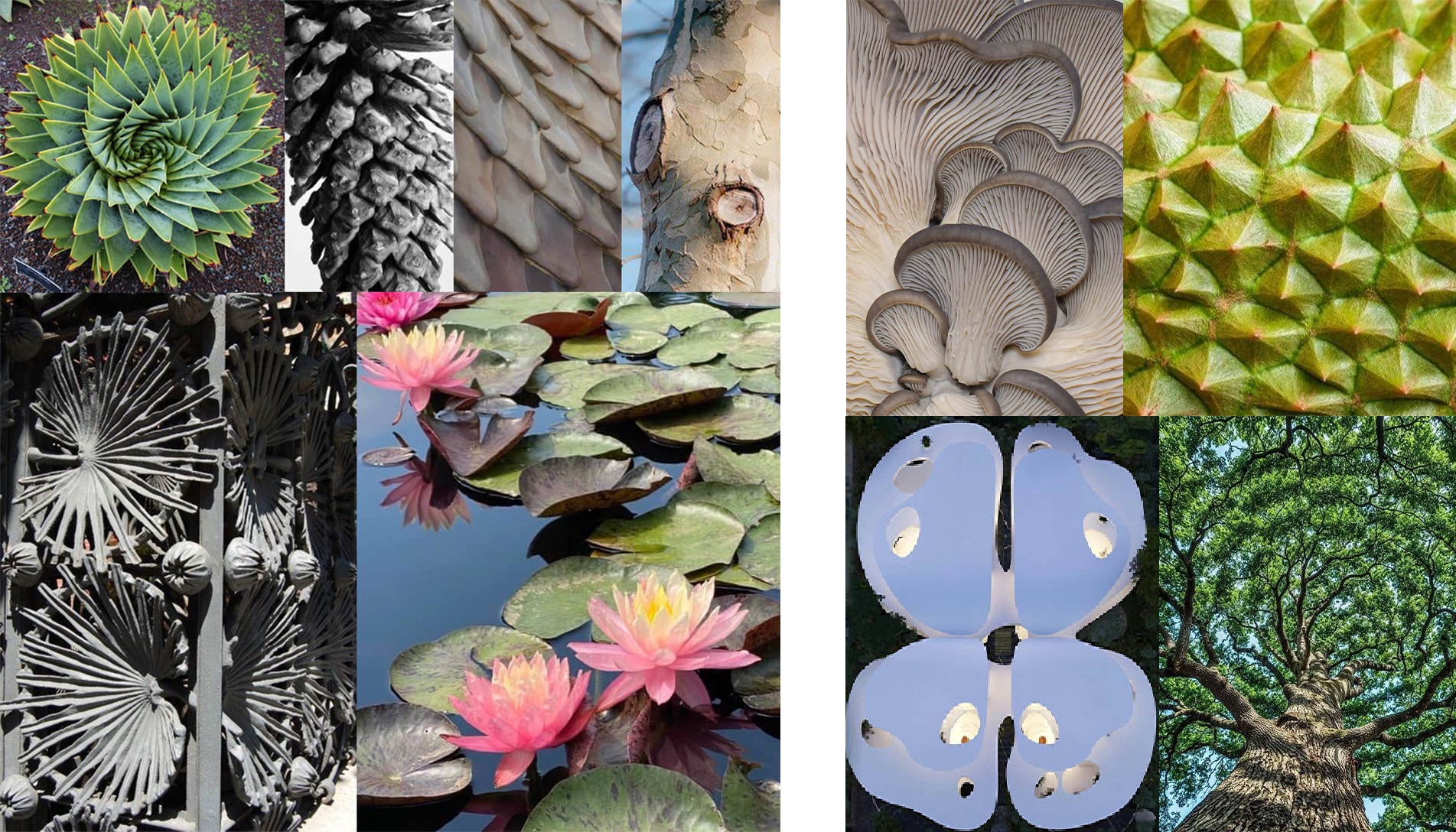 Morphological elements derived from nature, such as water dynamics, airflow patterns, and the adaptive behavior of vegetation in response to environmental forces were systematically correlated.