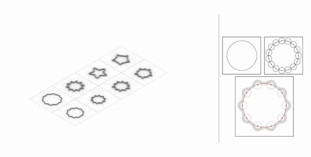 In parallel, the structure of the human body was examined, and its proportions were translated into a spiral, circular system that served as the foundational framework for the project’s structural elements. This biomimetic investigation ultimately functioned as the underlying algorithm guiding the generative design process.