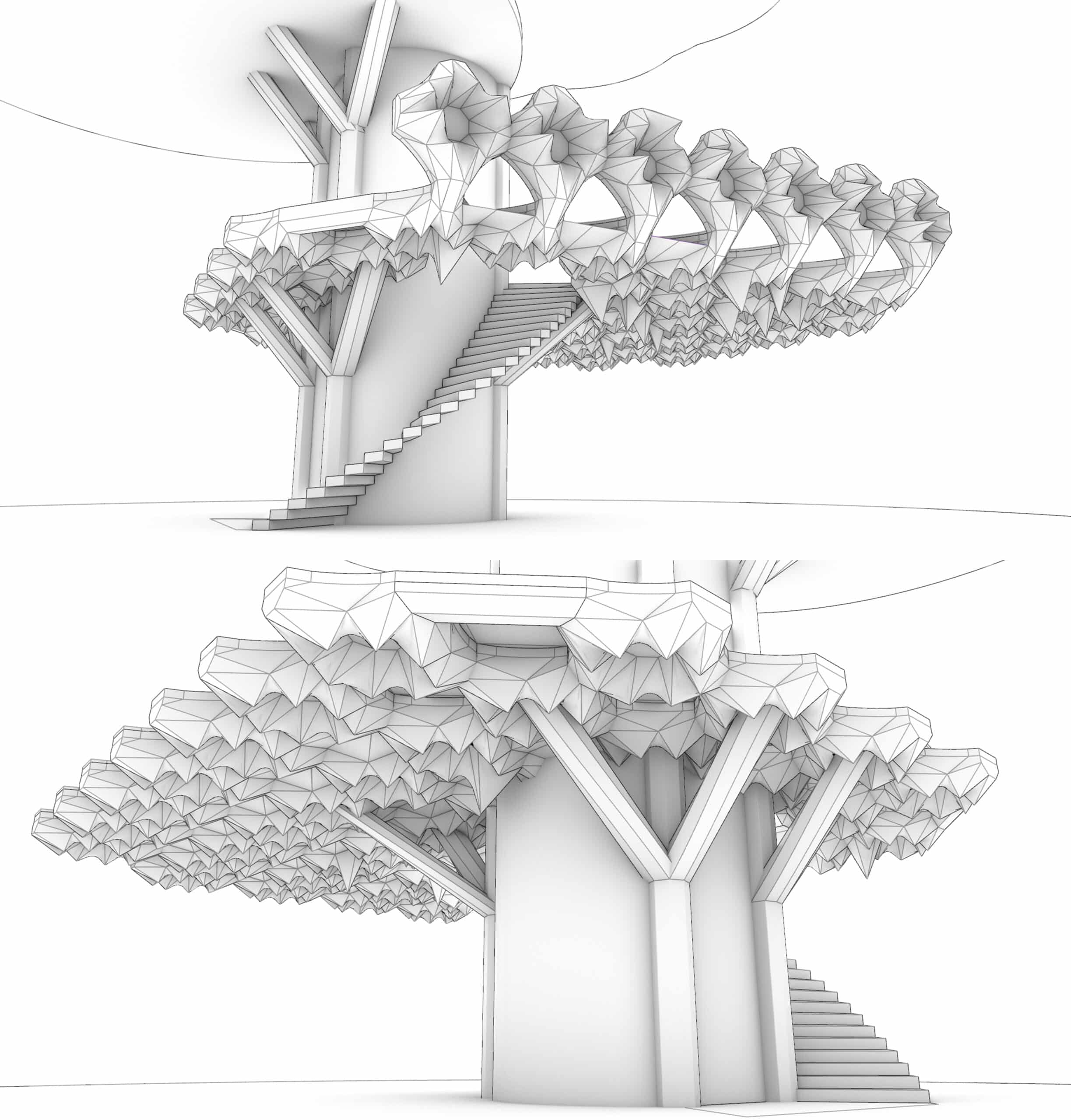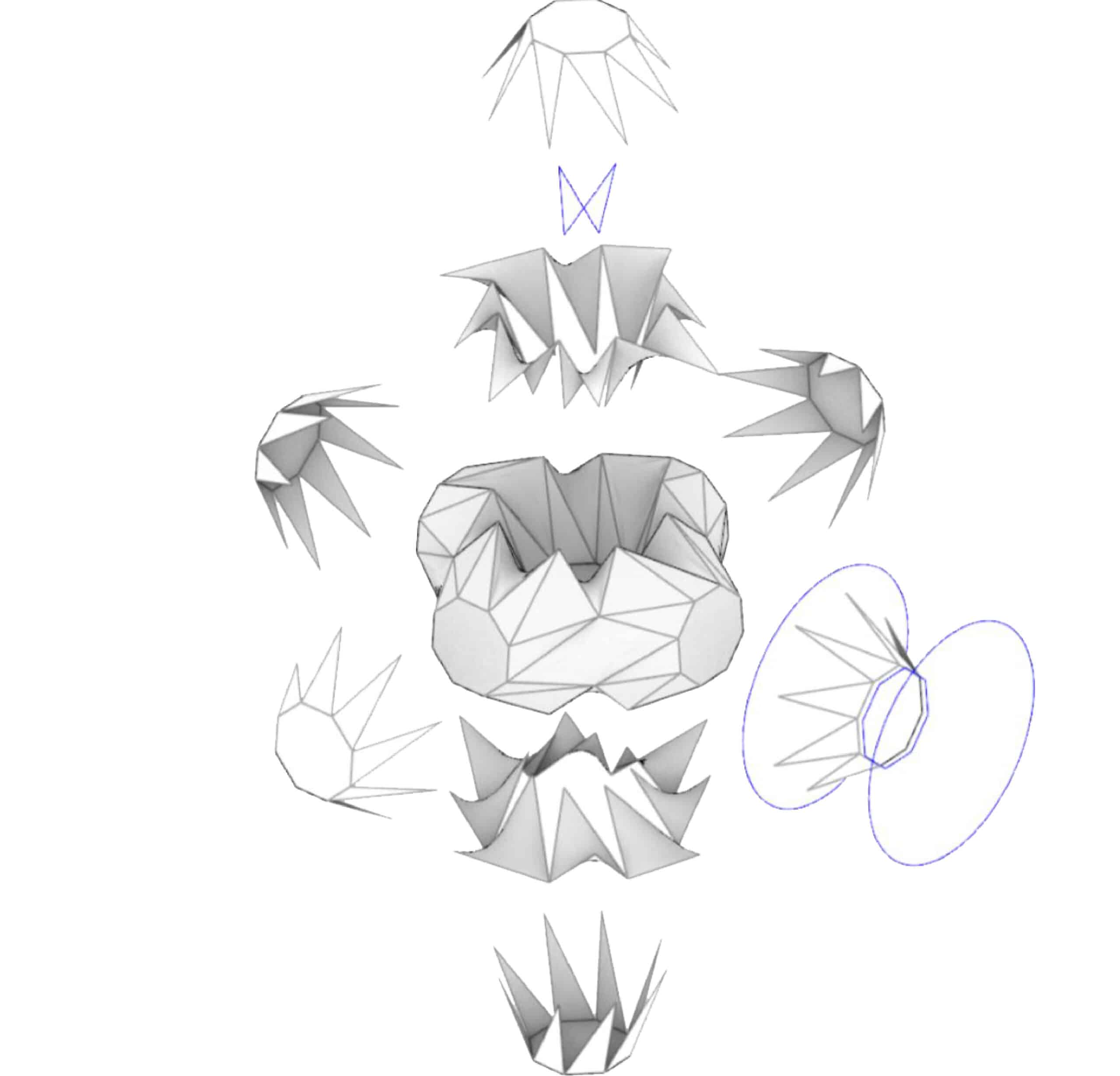 In parallel, the structure of the human body was examined, and its proportions were translated into a spiral, circular system that served as the foundational framework for the project’s structural elements. This biomimetic investigation ultimately functioned as the underlying algorithm guiding the generative design process.