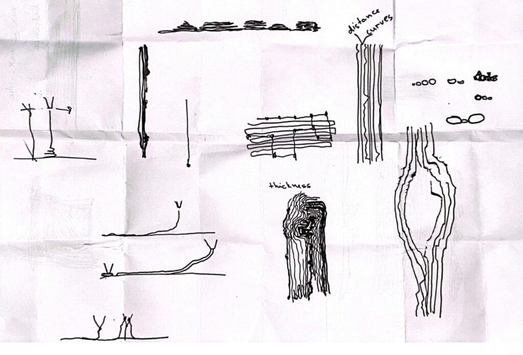 Using the second clay mixture, we conducted a series of tests based on simple linear paths programmed in Grasshopper. These tests explored the relationship between printing height and speed, forming what we referred to as the Anatomy of a Line.