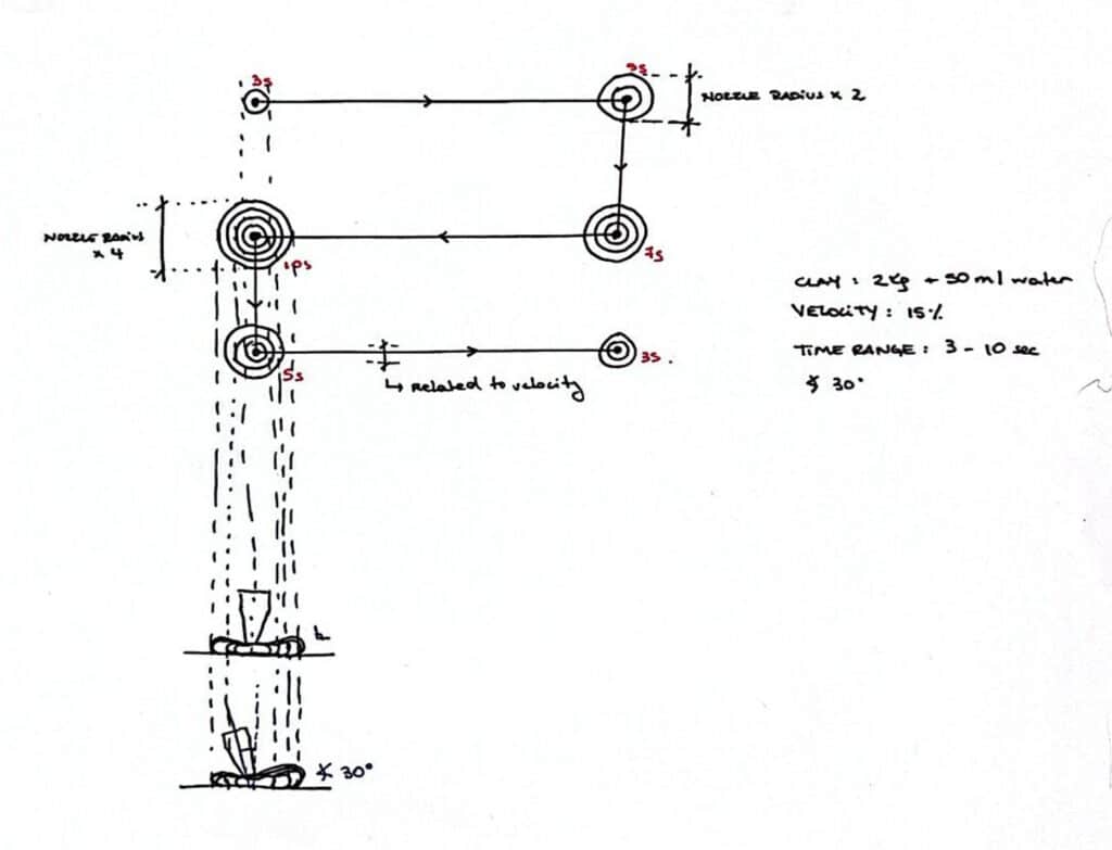 We began with manual robotic tests to calibrate the viscosity of the clay and understand its behavior during extrusion.