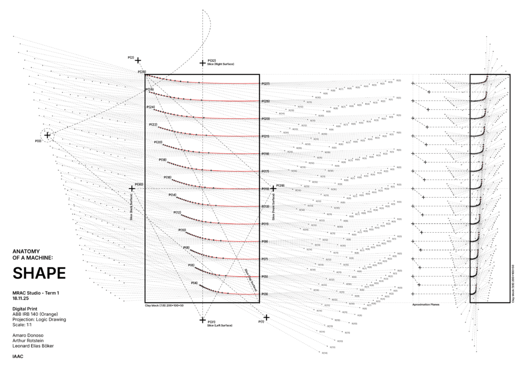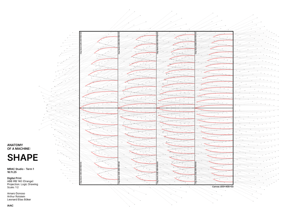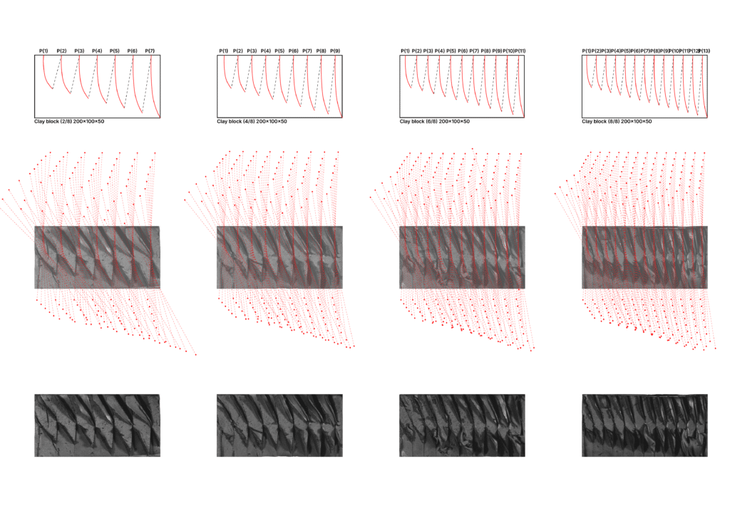 This exercise explores robotic fabrication processes through the direct manipulation of malleable materials. The assignment consisted of producing a 2.5D clay piece, measuring 40 × 40 cm with a maximum height of 5 cm, understood as a physical result of a robotically applied force on soft matter.