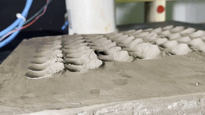 The initial testing phase focused on exploring the system’s capabilities through randomized stamping patterns. Different nozzle combinations were tested at varied positions, orientations, and heights to understand the range of textures and patterns achievable. Key test combinations included: