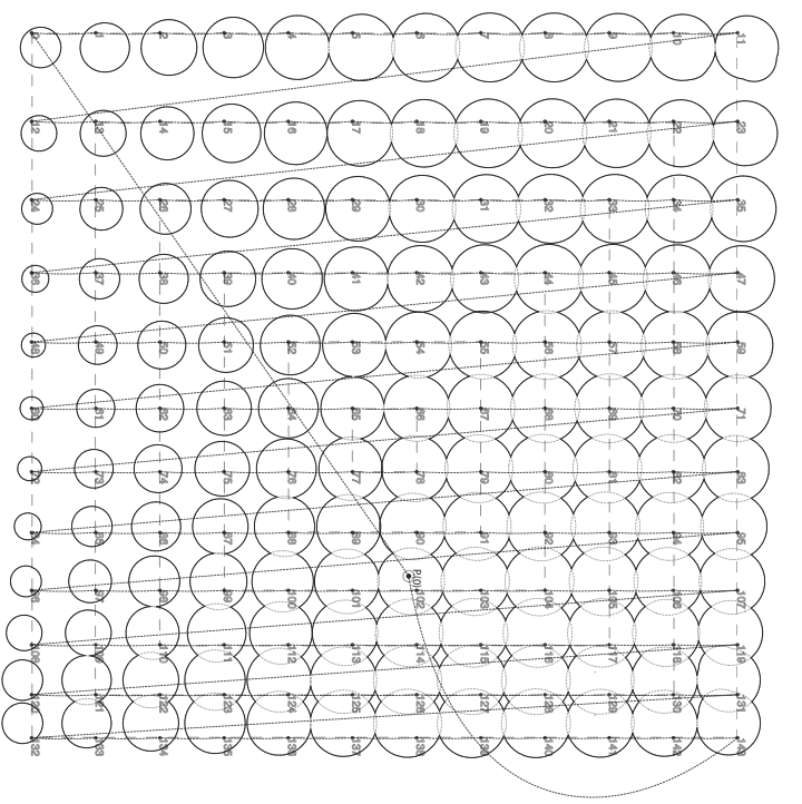 The first prototype established the baseline parameters, experimenting with the relationship between stamping point distances and vertical displacement along the Z-axis. This initial iteration focused on understanding how spacing between stamps affects overall pattern coherence and surface continuity.