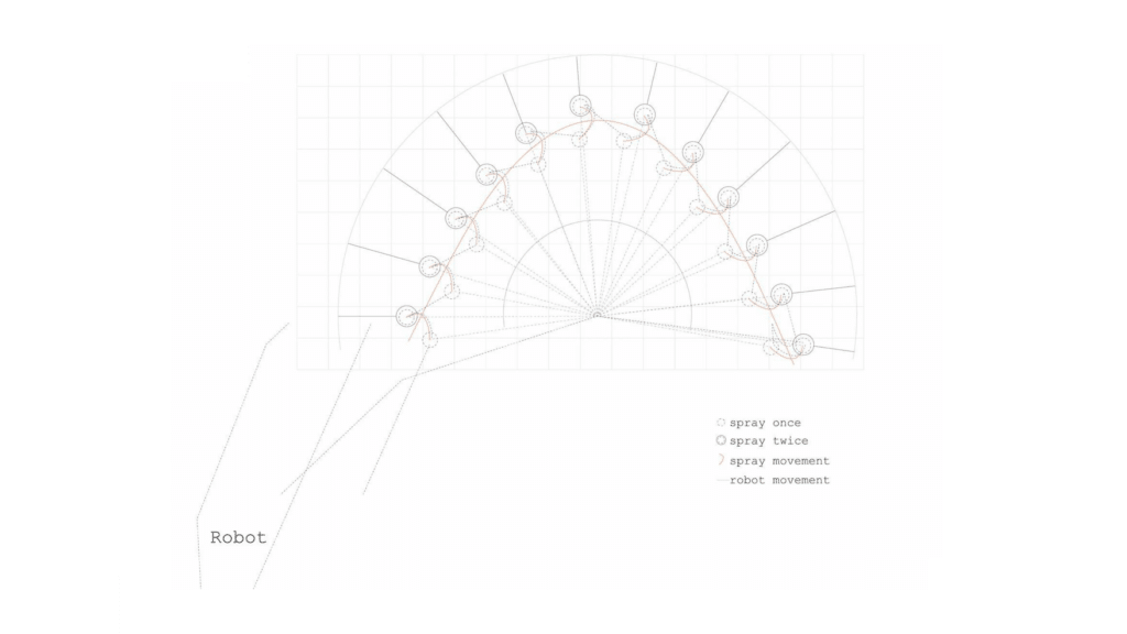 In the second exercise of Anatomy of a Machine, our goal was to understand how a robot expresses itself through material behavior. Instead of carving or shaping solids, we explored how liquid material behaves when actuated, accelerated, and released through a controlled spraying mechanism. “Spill” became a study of force, viscosity, height, angle, and timing and how these parameters become a visual language when translated into a robotic toolpath.