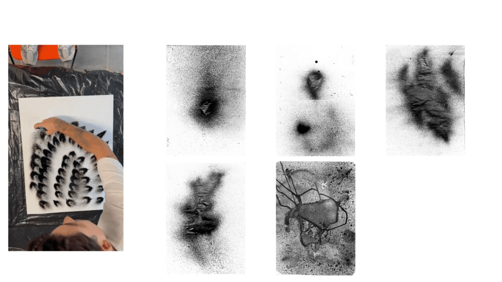 Before designing any robotic actuation, we experimented by hand to understand the raw physical logic of the spray medium.