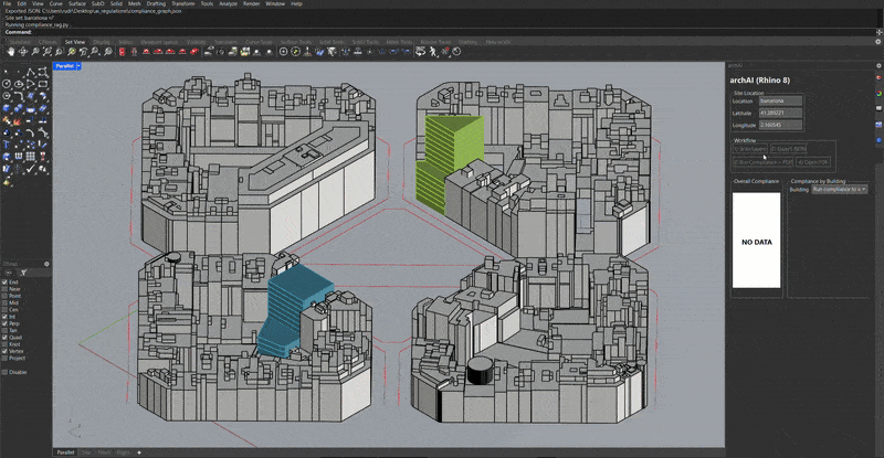 The final result is a seamless interface integrated directly into your existing CAD software. The workflow is designed for maximum efficiency: simply input your project’s location and sync your 3D volumetry. The system processes the local laws and generates a comprehensive report on the compliance of the applicable regulations