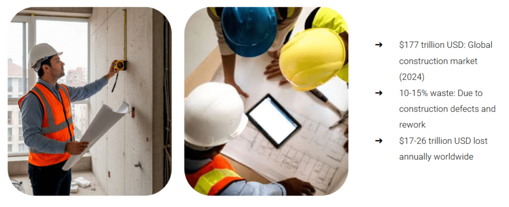 The construction industry remains one of the least digitized sectors globally, yet it manages a $177 trillion market. Despite this massive scale, approximately 12–20% of total project costs are routinely lost to rework, largely driven by discrepancies between design plans and as-built site conditions.