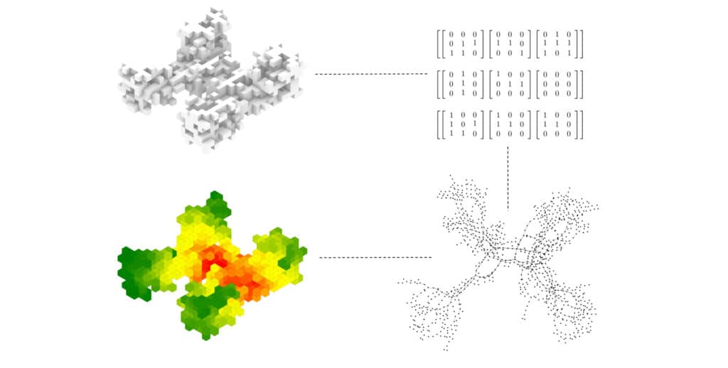 Drawing upon Hillier’s configurational theory in Space is the Machine, the metabolic growth of spatial assemblages within a constrained boundary can be syntactically governed by manipulating directional curves and compactness.