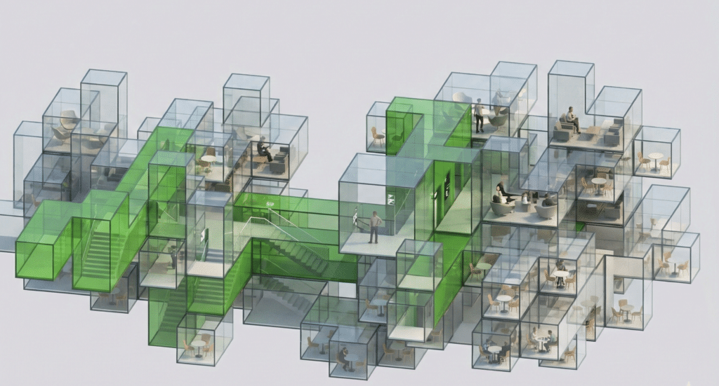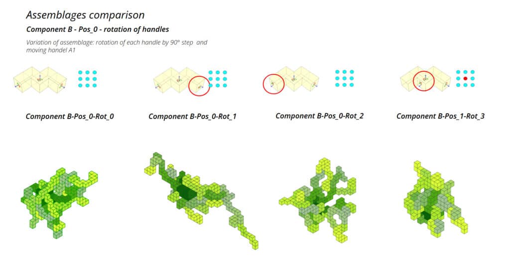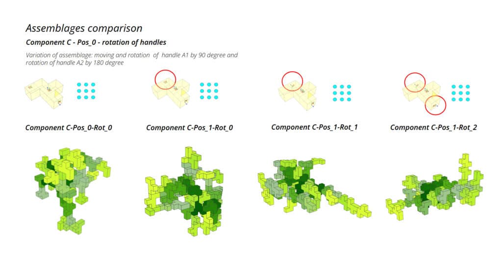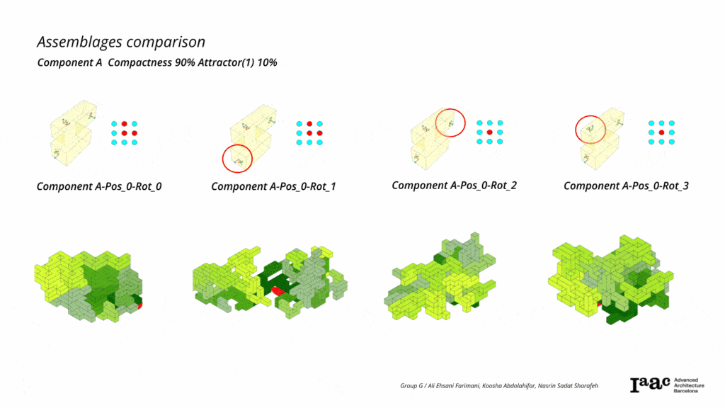 This project explores the computational assembly of components to form a multi-functional complex. By translating configurations into graphs, we applied Space Syntax logic to evaluate three key values : Depth, Integration, and Choice. The optimal architecture was selected based on the balanced symmetry of these indices. Finally, these analytical values directly guided the spatial programming, systematically defining private zones, public areas, and circulation pathways within the final assembled structure.