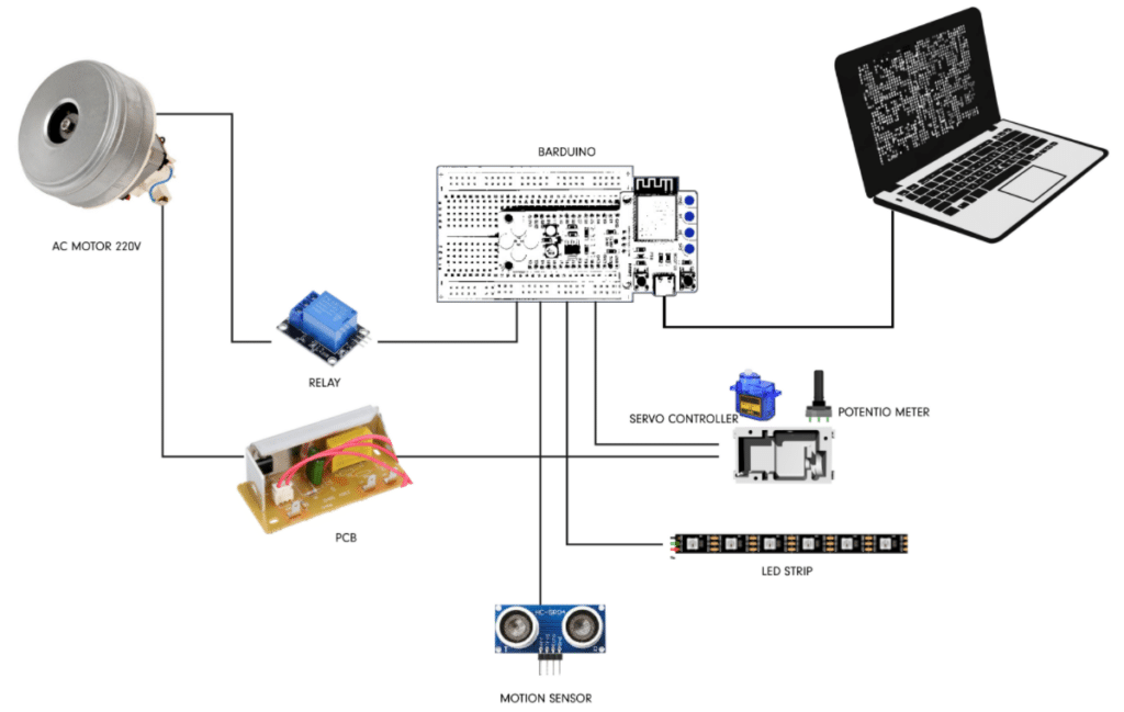 In our second week, “Machine Paradox” we aimed to create useless machine but using the components that we dismantled from our first week. Using the AC motor that sucks and throws air, we came up the idea to make a goblet of fire.