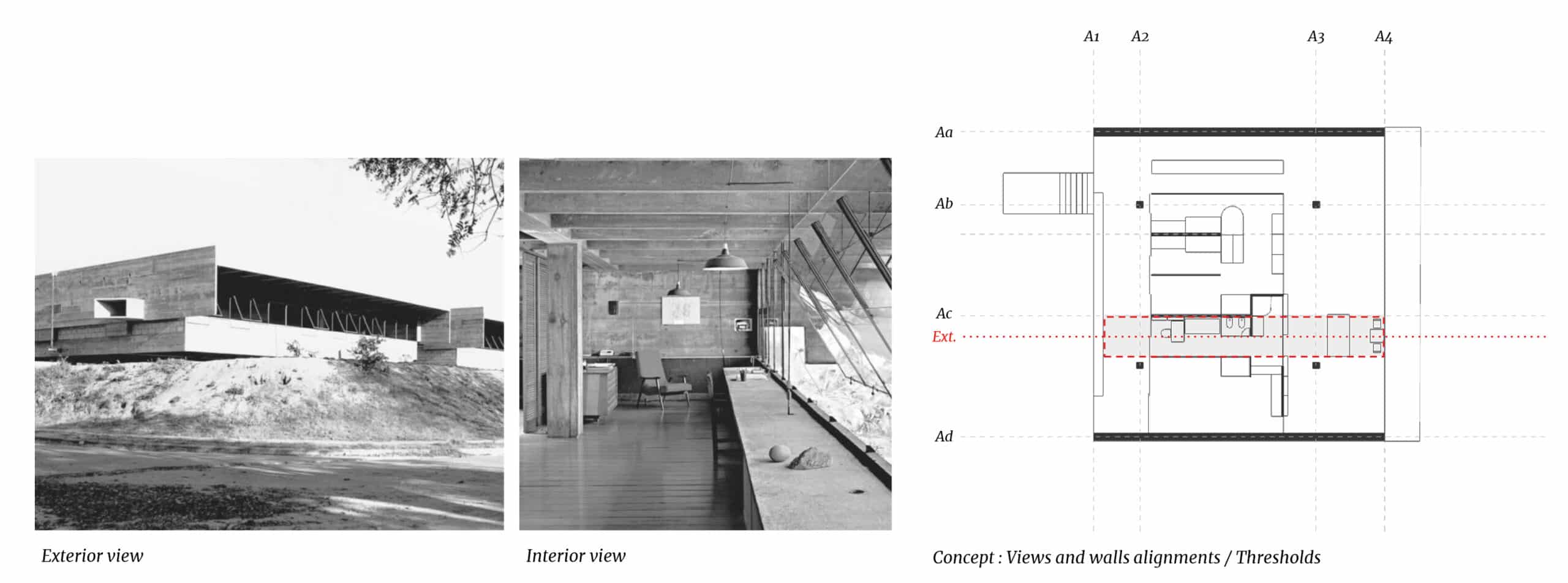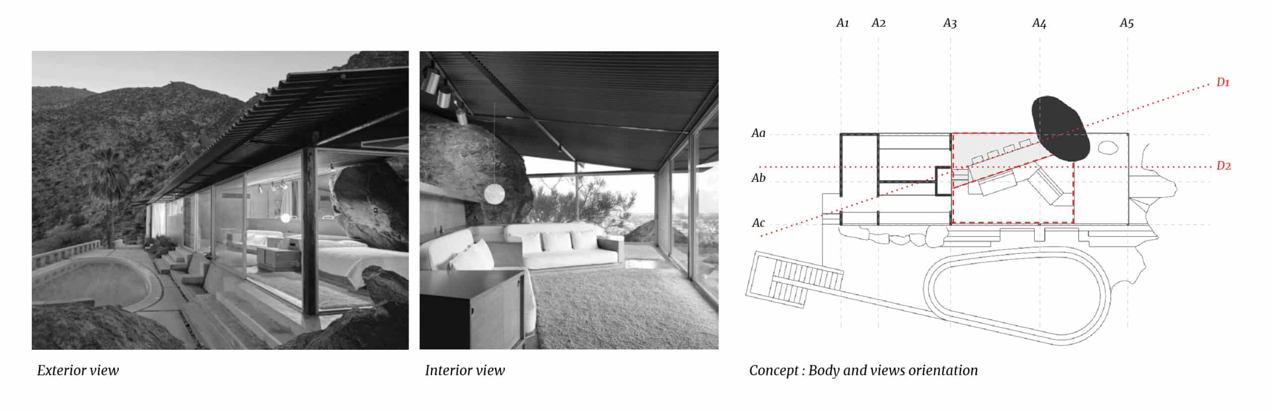 For the state of the art This reference is the Frey House in palm beach and The project is organized around the human body and the views. Here the Furniture, openings, and the roof guide orientation and frame specific views