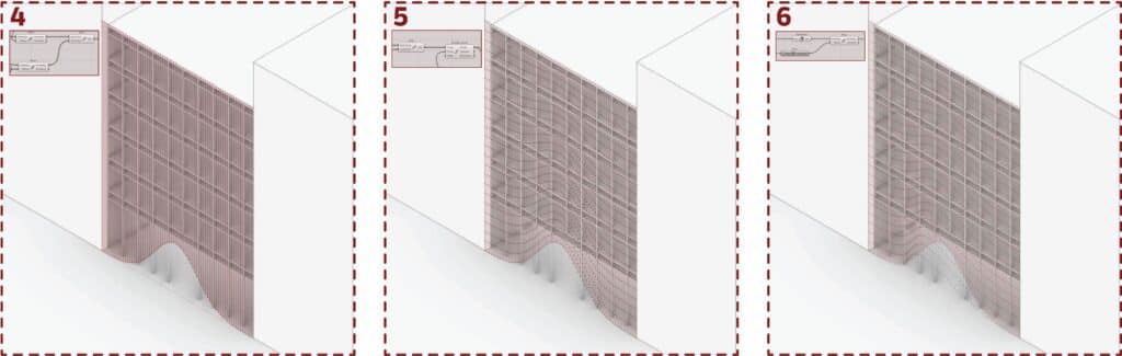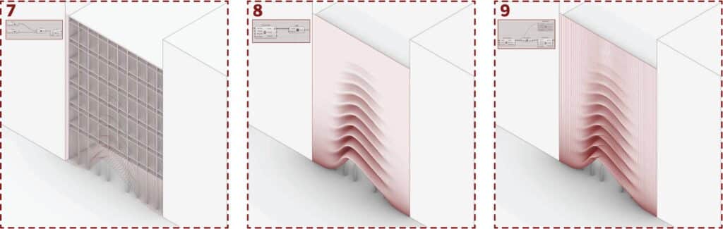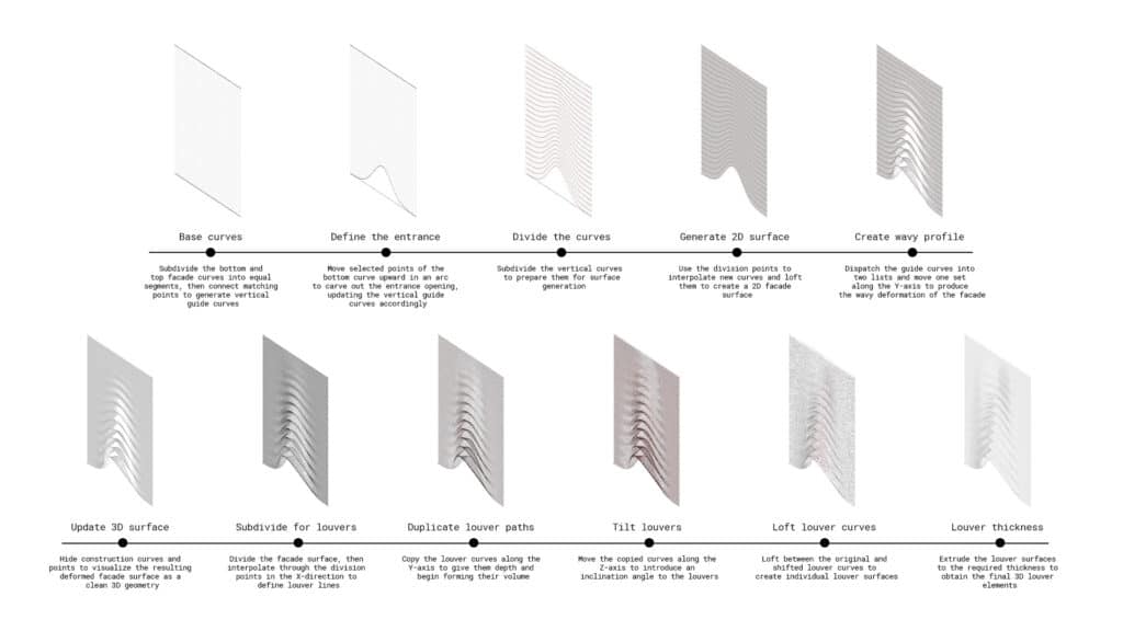 This assignment aims to investigate how architecture and technology overlap by designing a façade that includes at least one entrance opening using computational methods. We engaged through the full design workflow, from initial concept to final outcome, using digital tools and algorithms to produce innovative, dynamic forms on chosen building fronts within a specific Barcelona city block, and to communicate the form-finding logic through sets of diagrams and animations.