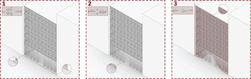 Bottom: author’s parametric façade diagrams for the Barcelona retail project, developed from the two precedents.