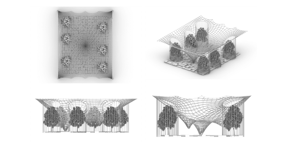 The final geometry balances tension, openness, and structural clarity—fully shaped by tree placement and boundary conditions.