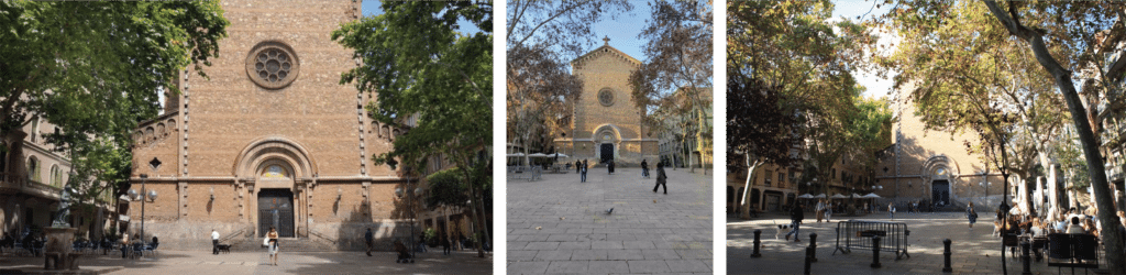 The plaza is framed by mature trees, religious architecture, and everyday social use. These elements became fixed constraints rather than obstacles to design.