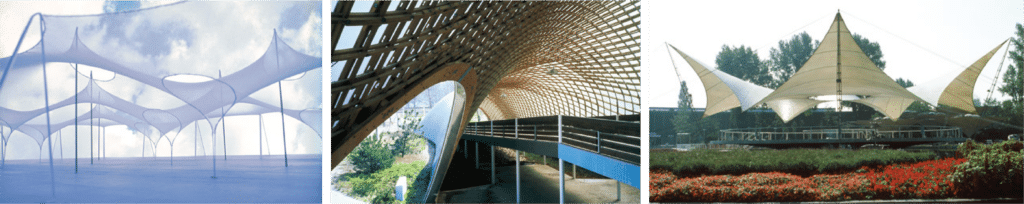 Frei Otto’s tensile structures informed the design approach—prioritizing force-driven geometry, material efficiency, and structures shaped by environmental conditions rather than imposed forms.