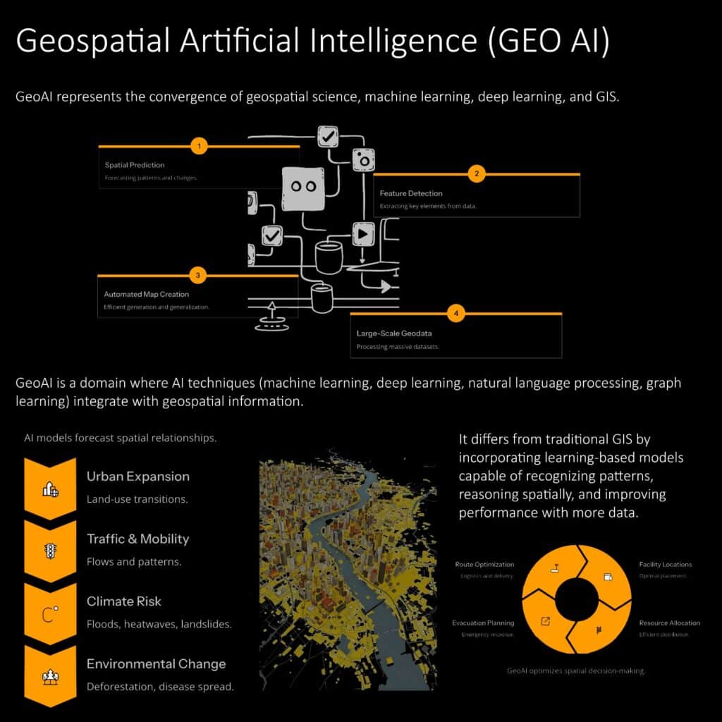 The next layer of our visualization maps the transition from traditional GIS to GeoAI—machine learning applied to geospatial data.
