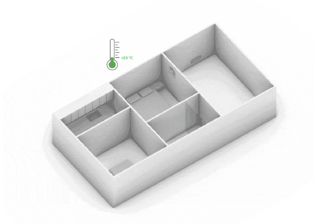 The system reacts to temperature changes: the sensor reads the current value, assigns it to a range, and triggers the corresponding response.