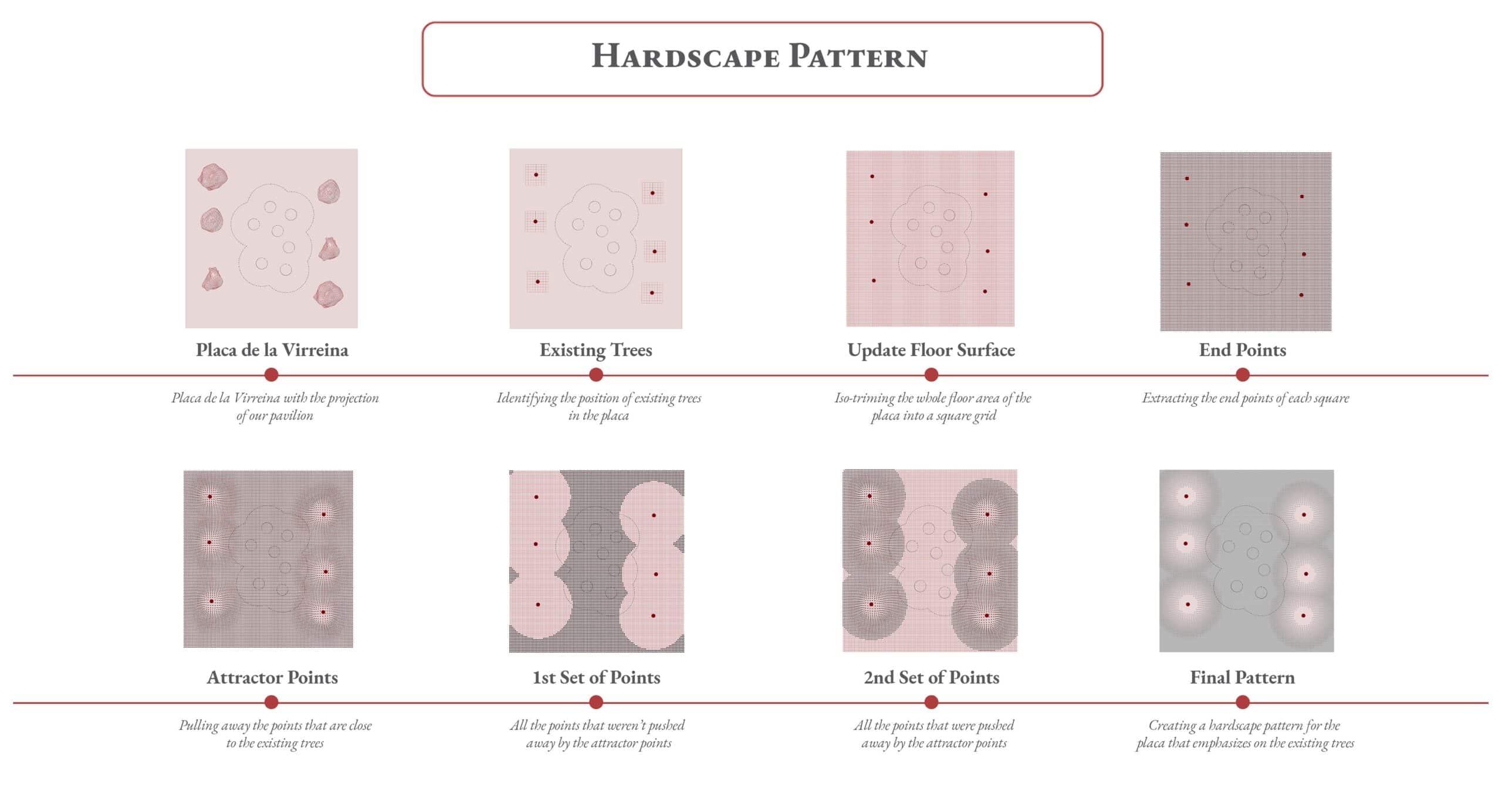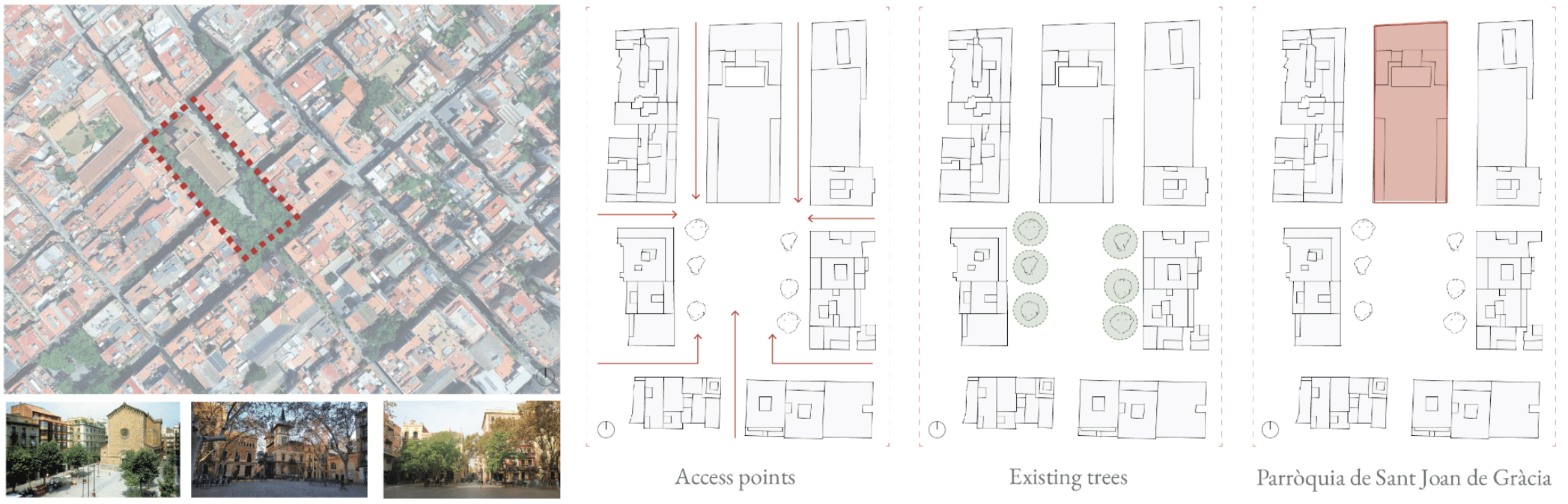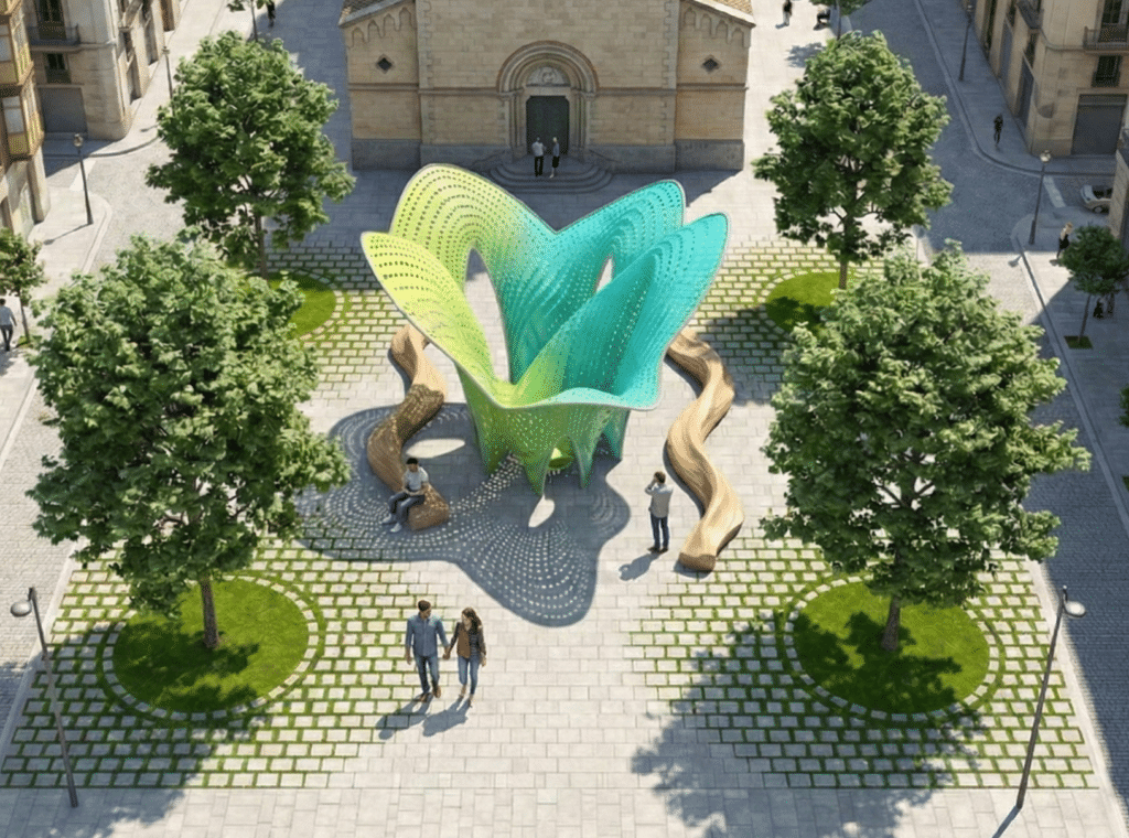 The architectural intervention is situated within Plaça de la Virreina, a prominent public square in the Gràcia district. The initial analysis involved a comprehensive mapping of existing urban conditions, specifically focusing on the primary access points to the square and the location of existing trees. These environmental constraints were not viewed as obstacles but as active parameters that dictated the spatial footprint and circulation patterns around the structure.