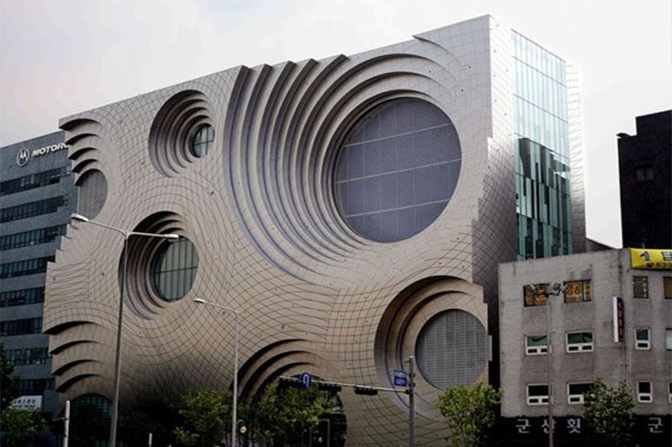 Our referential framework is the Kring Kumho Culture Complex in Seoul by Unsangdong Architects, a building defined by large circular recesses that function as urban windows.