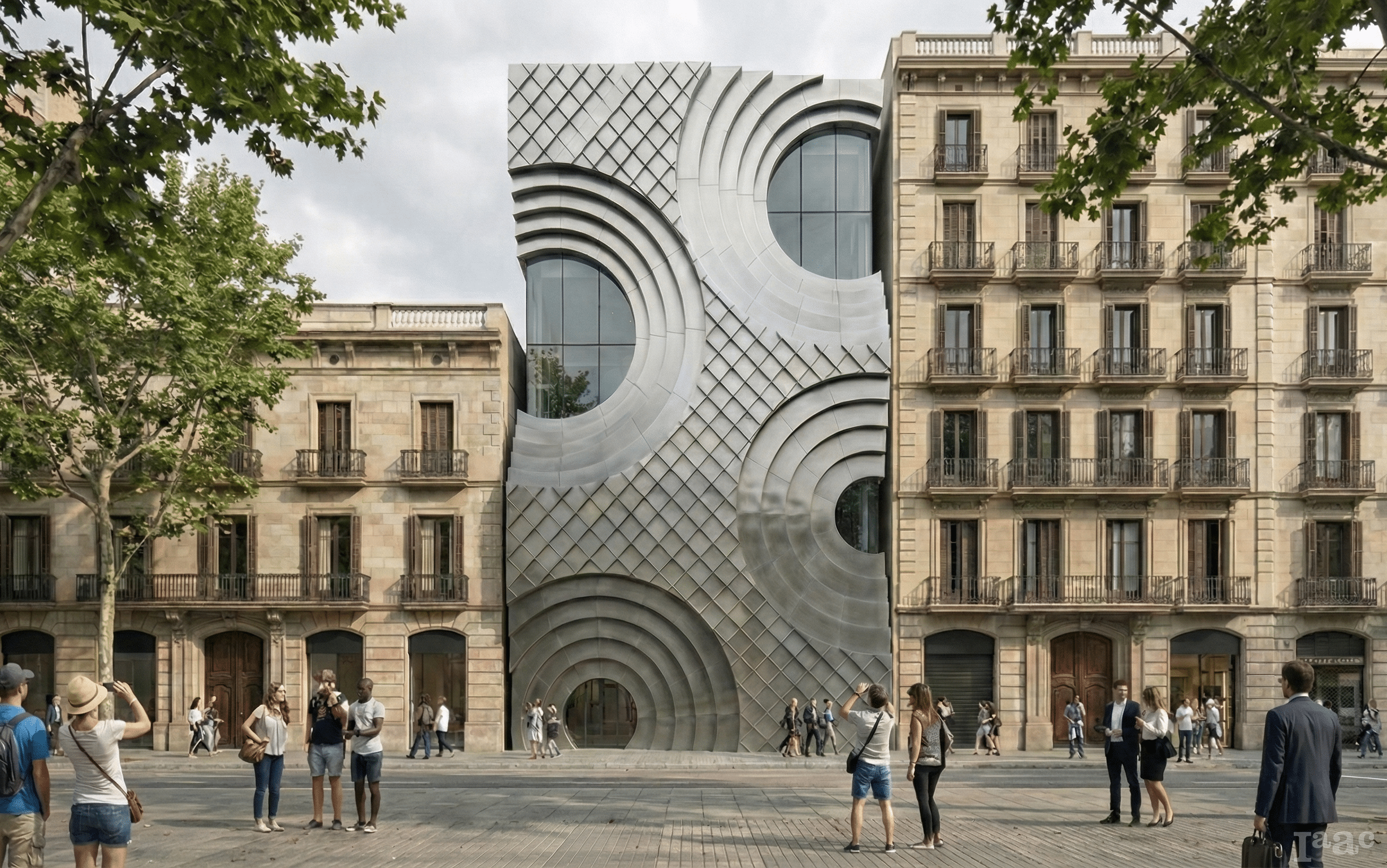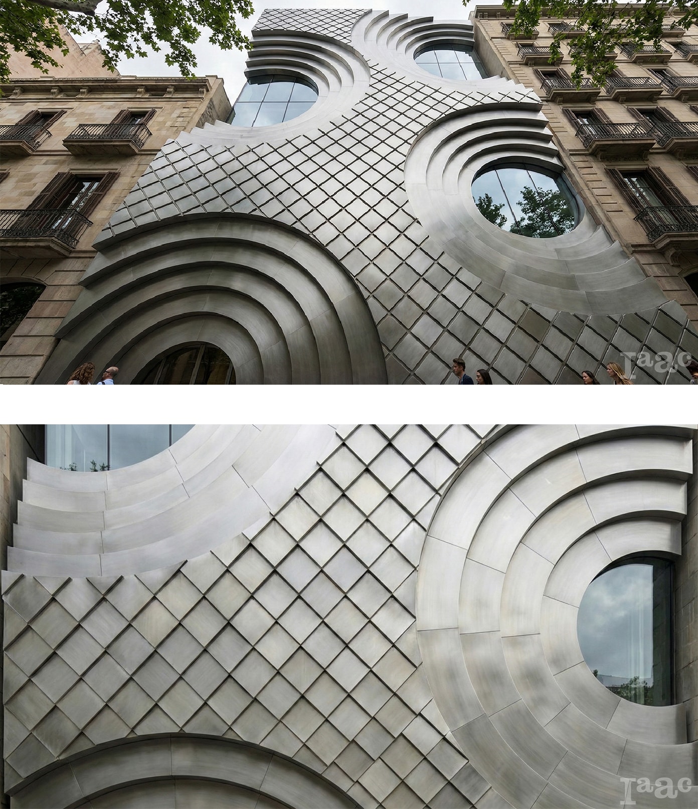 The logic we identified is that everything originates from the circle. The design implies that the architect did not simply draw an opening, but used that circle to actively deform the surrounding surface. The specific technique we recognized at the core of this design is the offset: the contour of the window is repeated outwards, like an echo. It is this repetition that generates the effect of depth and movement, transforming a simple void into the primary element that defines and organizes the entire facade.