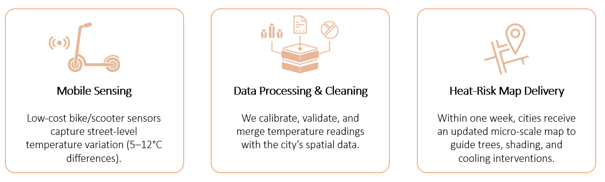 - Per-project mapping fee → one-time micro-scale heat-risk mapping for a district/city