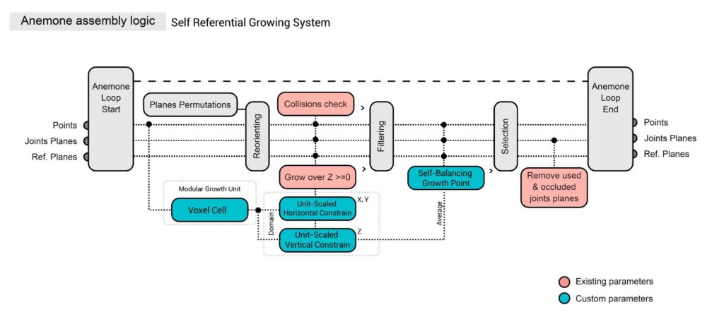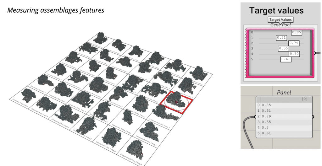 The selection method takes a carefully calibrated attractor point derived from an average between the maximum height and assembly center and, which was repeated three times to create intentional bias towards a lower region of the assembly.