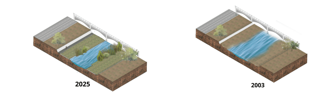 Today, these structural modifications continue to generate major problems. Difficulties in species preservation, water contamination, and recurrent floods that can completely inundate the Fluvial Park are direct consequences of the river’s current configuration, combined with a highly urbanized watershed and increasingly intense rainfall.