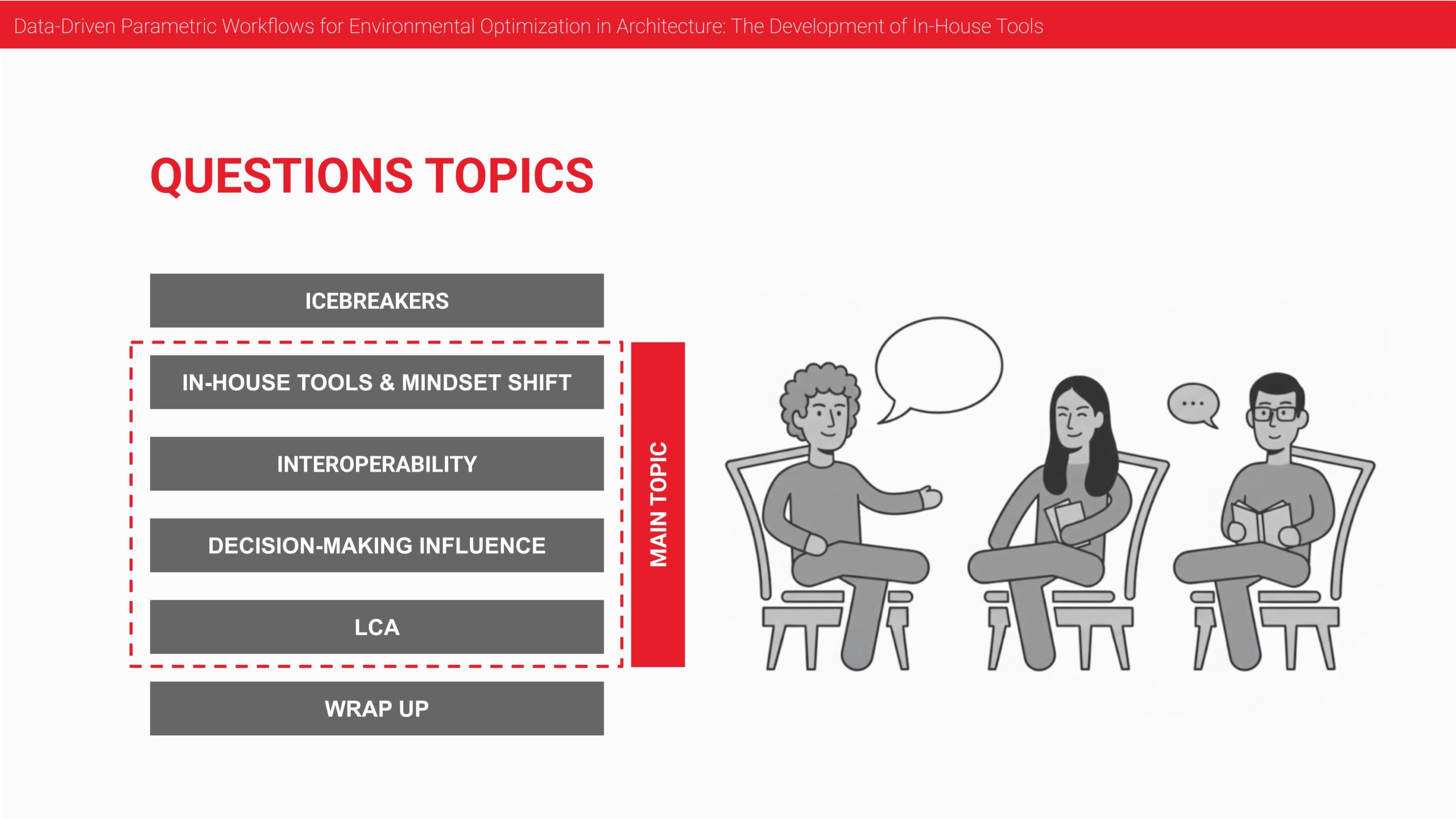 So having the interdisciplinary teams from the start, instead of having them join later in the process, like the sustainability consultants often come later in the process, but if you include them upfront in all the measurements or even high level, that could be very helpful in the early stage. Another strategy could be to embed performance metrics directly into design workflow rather than treating them as an external report.