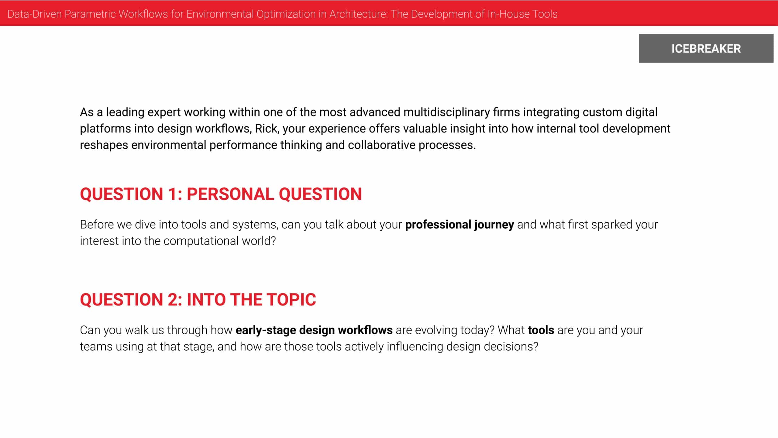 Thank you so much, Rick. It’s been a pleasure. Thank you for your time, for the depth of insight that you shared with us today. It’s truly inspiring to see the effort that you and your team are putting on developing those in-house tools to really enhance the data-driven workflows and environmental optimization, structural optimization and we really admire how Arup is shaping the future.