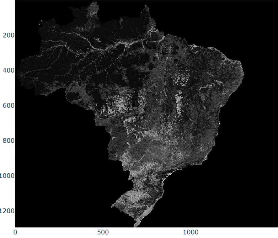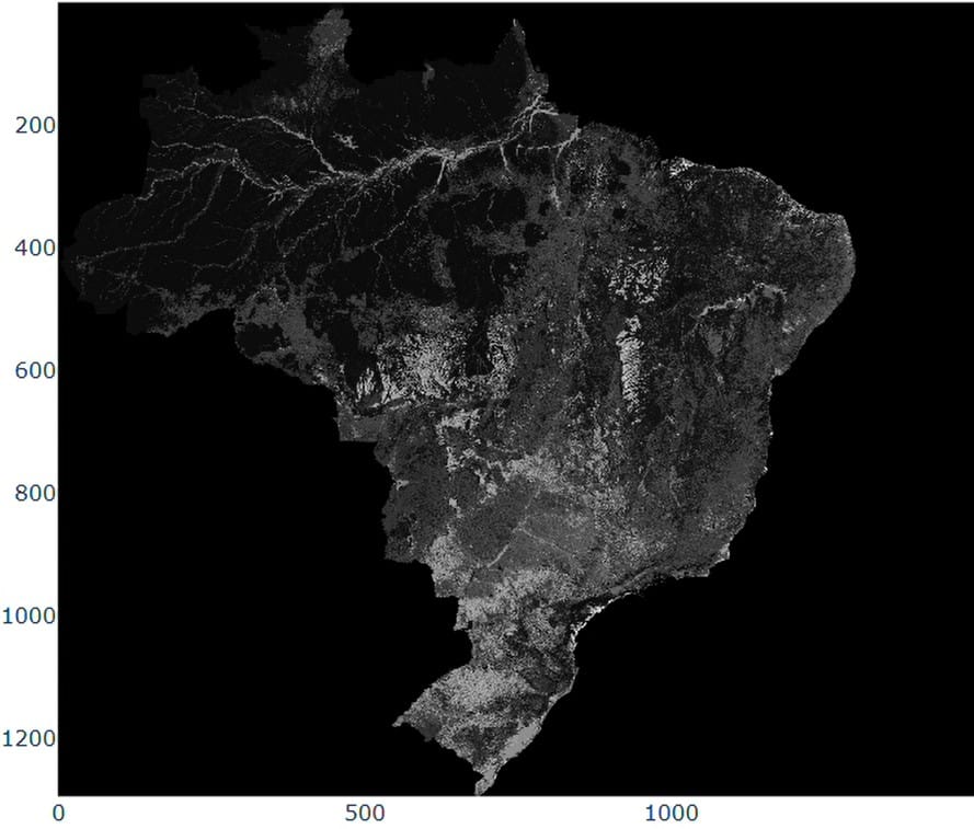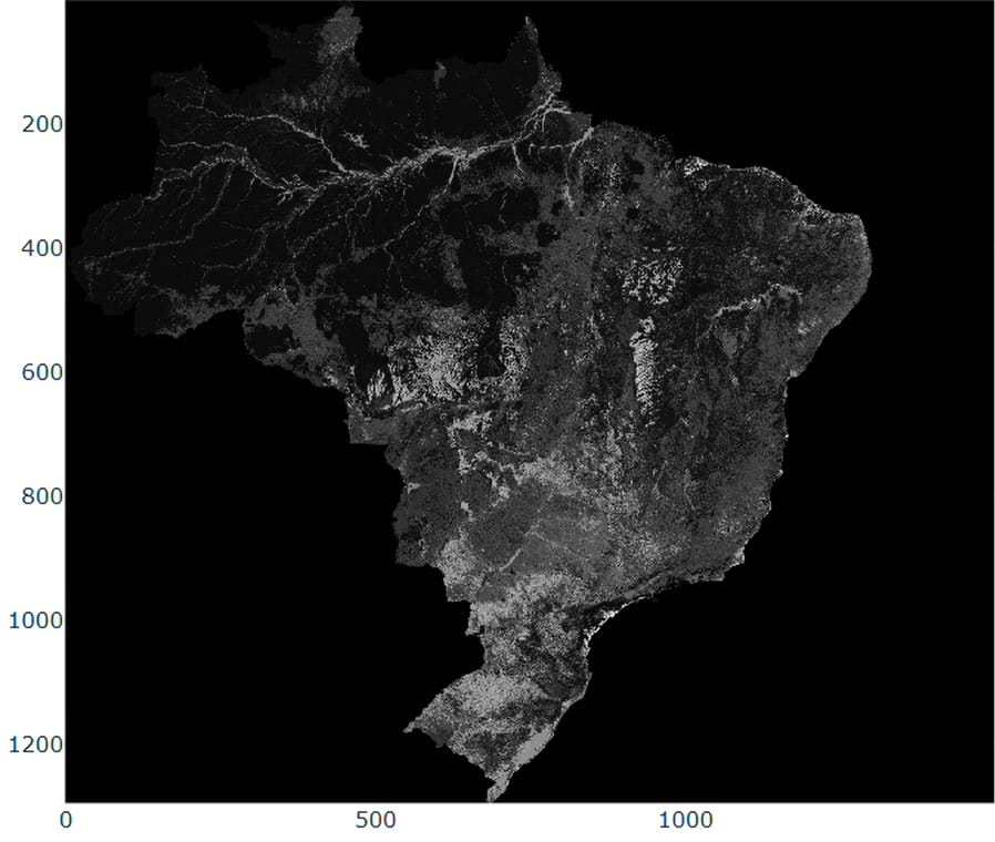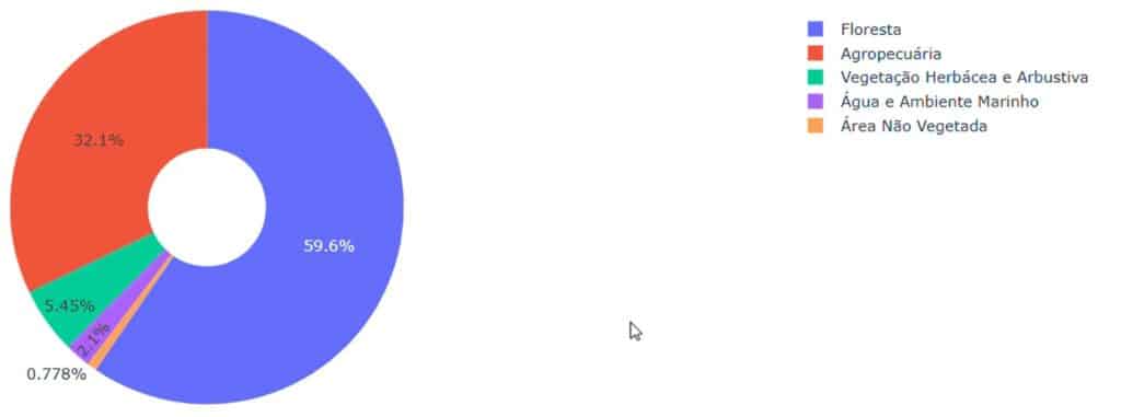 The visualization presents Brazil’s land cover in 2024, showing the dominance of forest formations, which occupy about 59.6% of the territory. The 1985-2024 time series reveals a gradual reduction in forest cover and steady agricultural expansion. These patterns reflect the diversity of Brazilian biomes, each contributing distinct landscapes.
