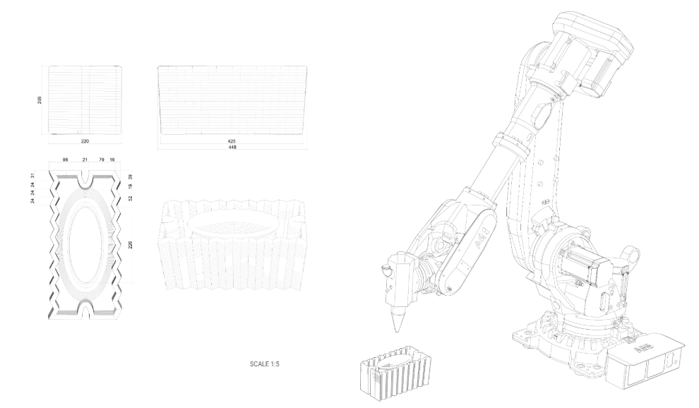 The project involves a large geometric form designed for clay 3D printing, consisting of 6 identical sections. This article will present the results of our analyses that explore the technical challenges and opportunities of this geometric design during the clay fabrication process.