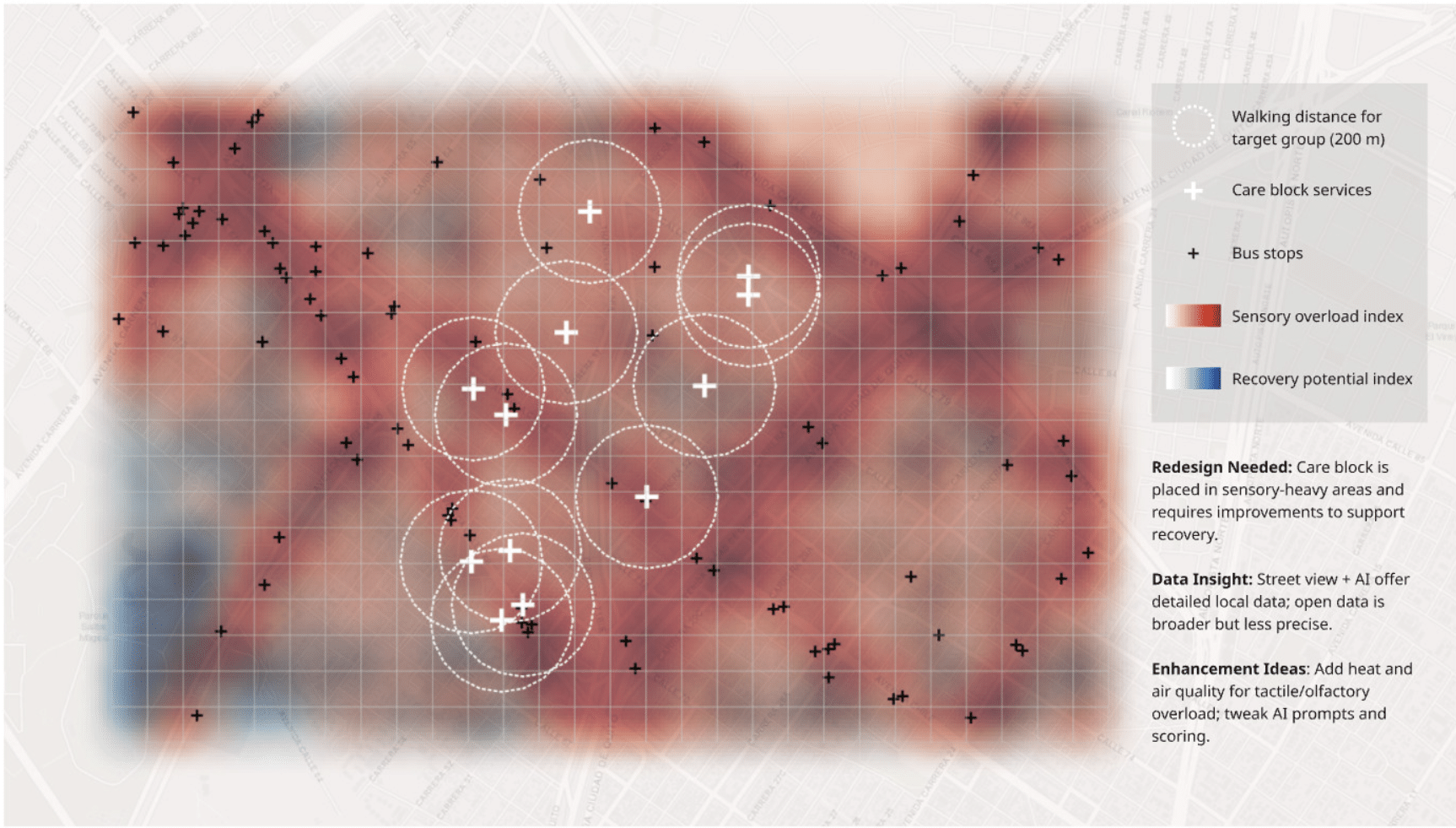 My interest in AI and its application in the AEC industry started before this course. During the IAAC GSS, I worked on a study in Bogotá using GIS and image‑recognition tools to map sensory criticality in care-focused urban zones.