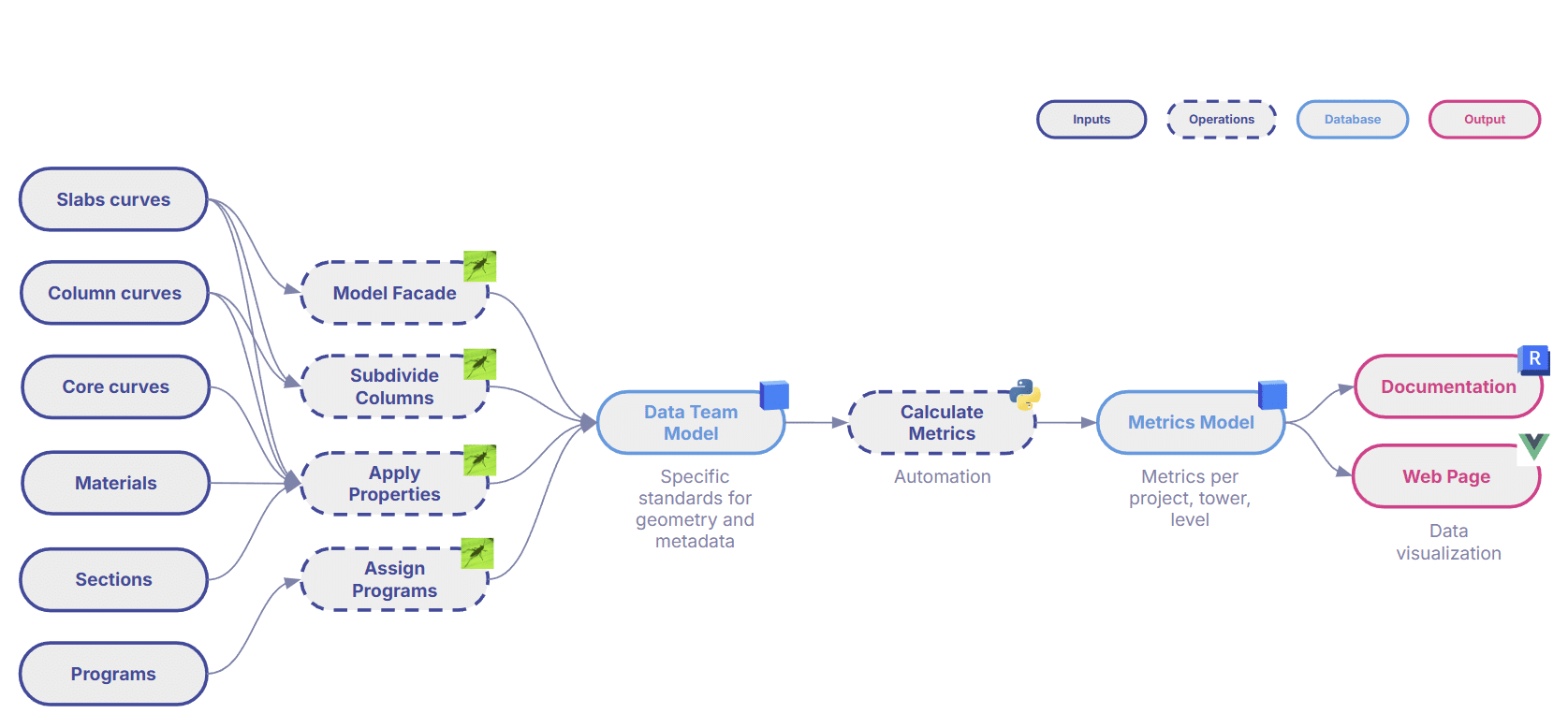 To fix this, we designed an end‑to‑end pipeline that connects geometry, performance, data management, and visualization into one continuous digital tissue — a system that evolves as the building evolves.