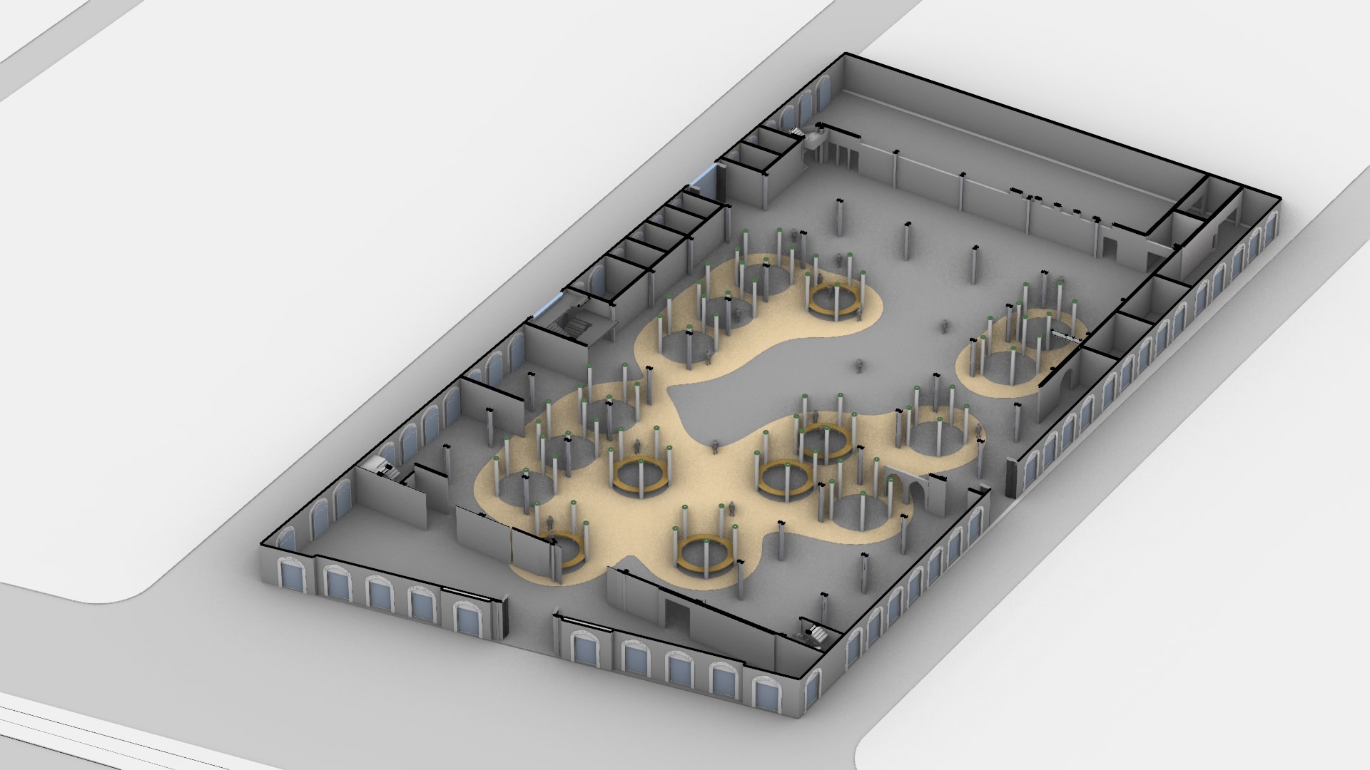 A subsequent generative process utilizes circles and metaballs to define the necessary boundaries and flow. These computational elements are employed to delineate the precise spaces for the market stalls and the required public access and circulation areas. This approach ensures that the final configuration of the market is not arbitrary but organically linked to the dynamic shading conditions above, creating a highly specific and performative ground plan.