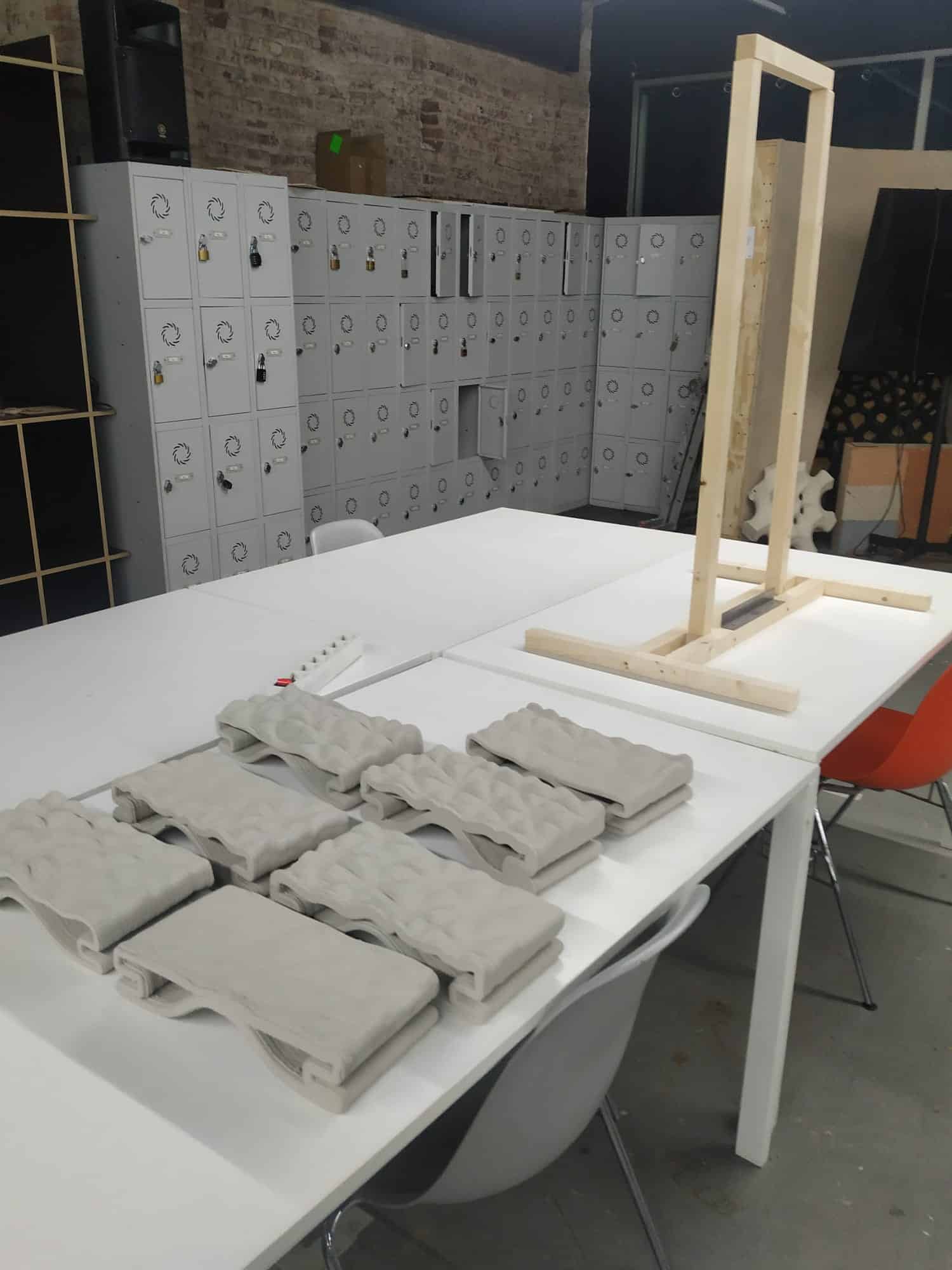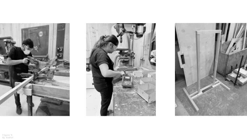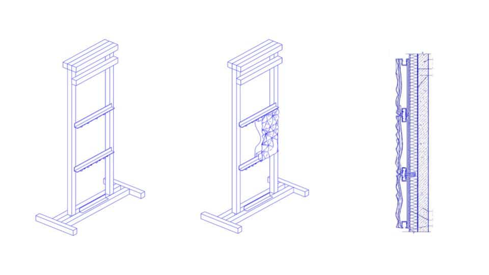 To assemble the 15x30cm tiles a frame is built.