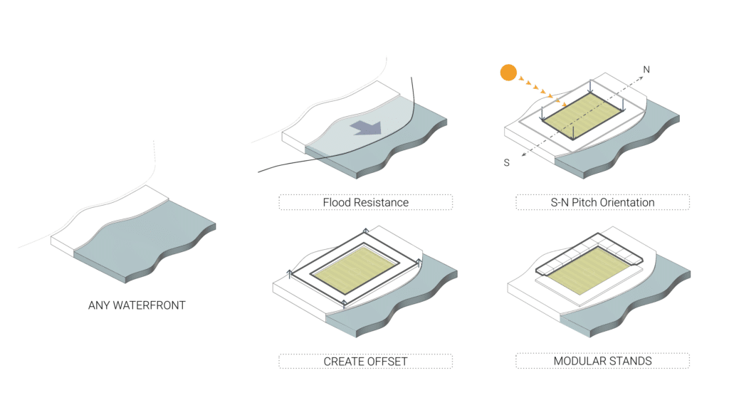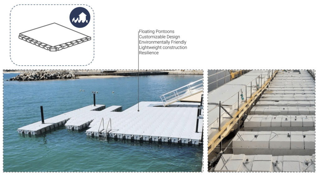 For the floating components, floating pontoons were selected as the primary support system.