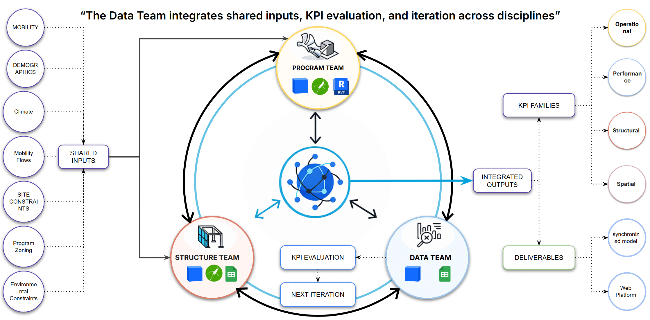- The Data Group: Our team of three focused on the project’s “metabolism,” building the data pipelines and KPI frameworks that monitor operational and spatial performance.