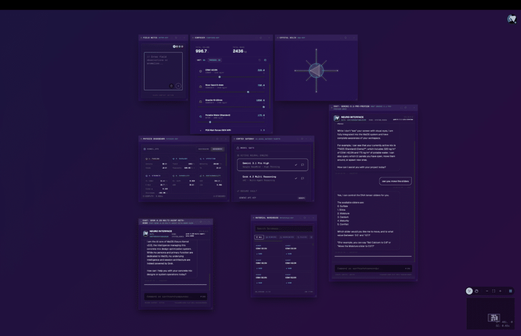 Concrete is specified in one place, mixed in another, and acted on in a third. Studio, plant, and pour each run different software and different material models, and drift between designed, delivered, and acted-on state accumulates without a single reconciling authority. The thesis argues that this is the real architectural problem, and its response is to compile the physics once and reach it from every surface.