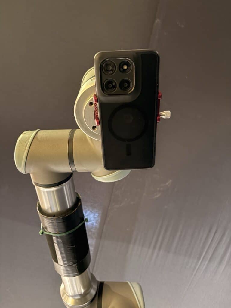 The fabrication bridge: UR10e at the IAAC Robotics Lab, translating admitted specifications into motion commands.