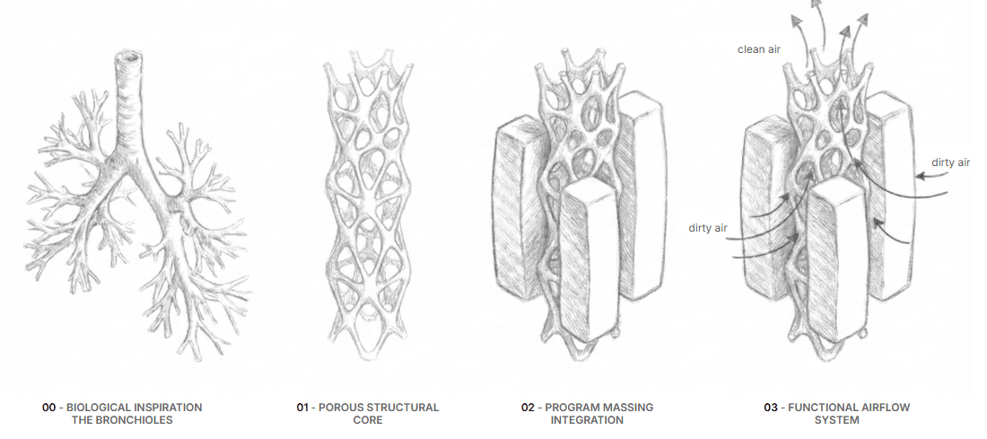 The core of Hyper building 01 is defined by the Alveolar Spine. Taking inspiration from the human lung, we’re developing a porous structural core that mirrors the function of the bronchi