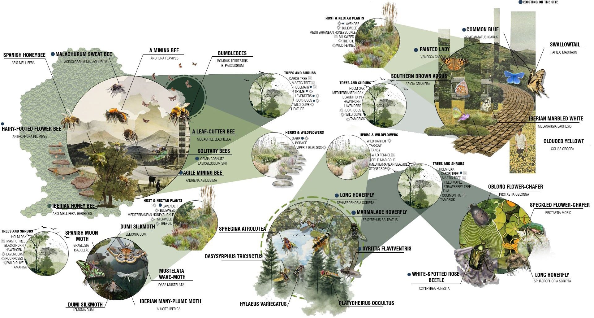 This project builds on existing pollinators while creating the conditions to attract new ones through native, drought-resistant plants, layered vegetation, and continuous habitats. By restoring soil health, water availability, and connectivity, the site becomes a stable environment where pollinators can thrive and support broader urban biodiversity.