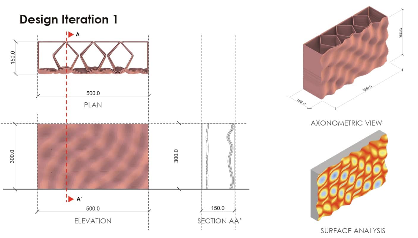 The design evolved through two main iterations, testing panel geometry, acoustic performance, and surface articulation. We explored how parametric variation could produce panels that are visually dynamic while remaining practical for large-scale fabrication and modular assembly.