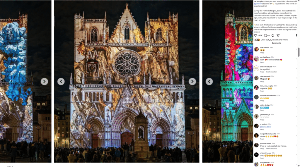 (The plaza outside Saint‑Jean Cathedral. The light projections intensify. Ashley streams live. Étienne grows restless. Lukas sits alone in his study, screen glowing. He watches Ashley’s livestream not for spectacle, but for patterns.