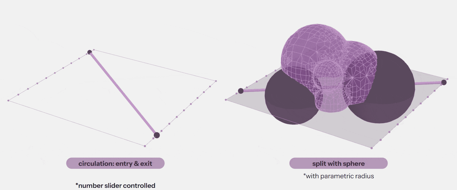 With our form, we then define our circulation by having points on either sides of our bounding box connected by a line that goes through our form. This allows us to find the closest point on the mesh from which splitting spheres are made from the 2 points.
