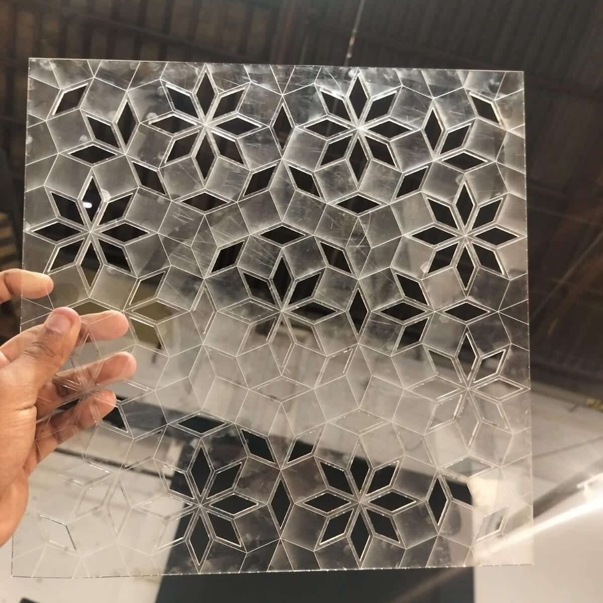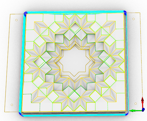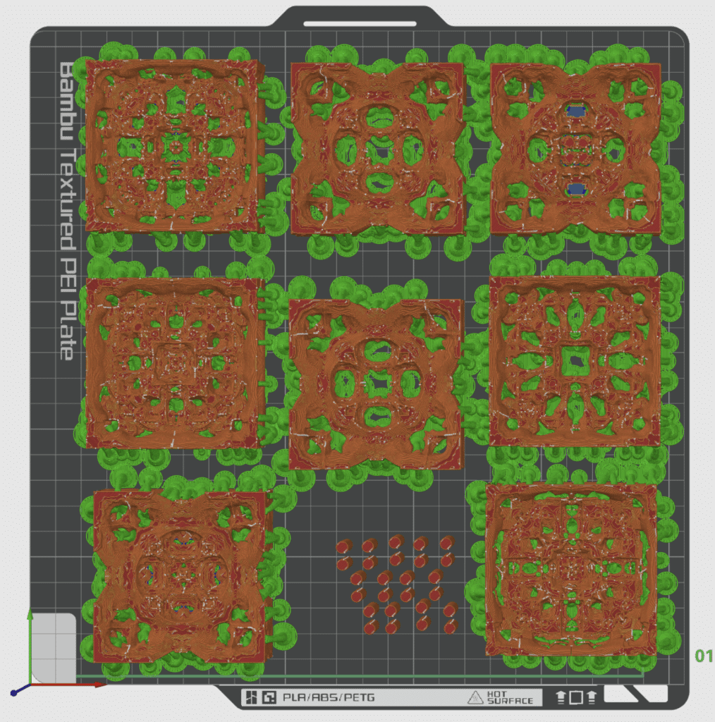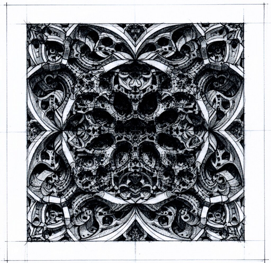 The tile geometry originates from an intentionally chaotic and irregular initial morphology. This seemingly disordered form was then subdivided into eight equivalent segments, whose systematic mirroring generated a coherent set of eight regular tiles. In this way, an ordered configuration emerges directly from the manipulation of the initial chaotic geometry.